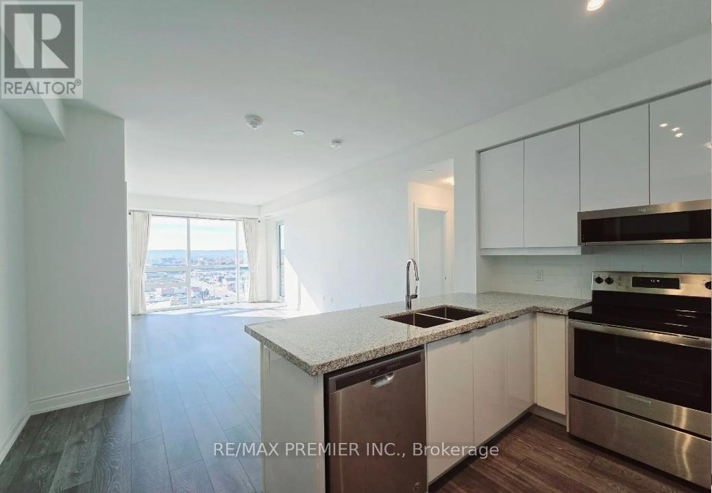 Welcome to Unit 1114 at 1050 Main Street in the Art on Main condominium. This well-designed 2-bedroom plus den, 2-bathroom suite features 10-foot ceilings and open views from the 11th floor. The kitchen offers quartz countertops, stainless steel appliances, and ample cabinetry, overlooking the open-concept living and dining area with a walk-out to a private balcony. The primary bedroom includes a walk-in closet and a 3-piece ensuite with a glass shower. A second full bathroom, a separate den ideal for a home office, and in-suite laundry provide added functionality. One underground parking space and one locker are included. Building amenities include a concierge, fitness centre, outdoor pool, party room, and rooftop terrace. Conveniently located close to shopping, restaurants, parks, and transit, with easy access to major routes. (id:4555)