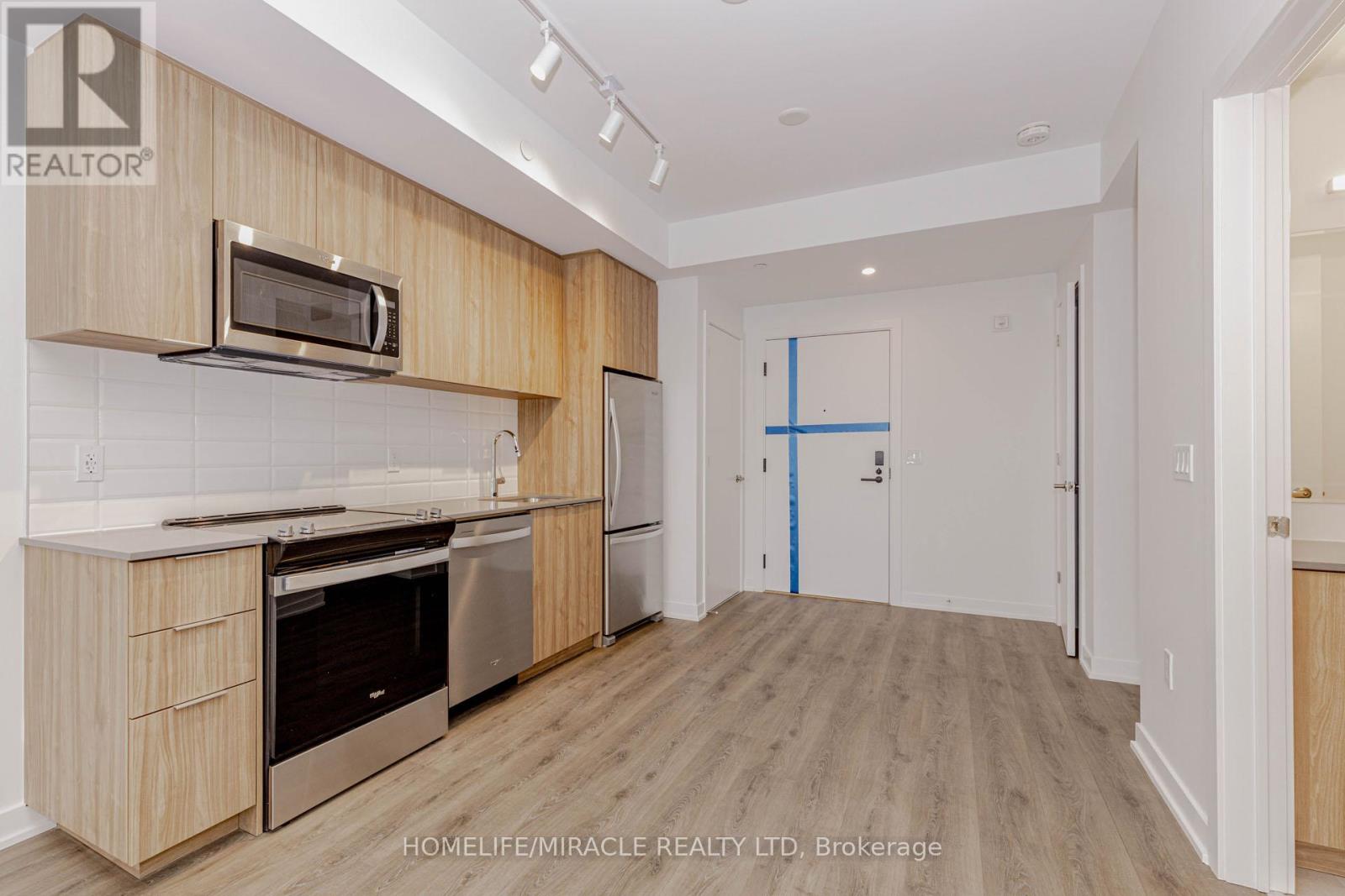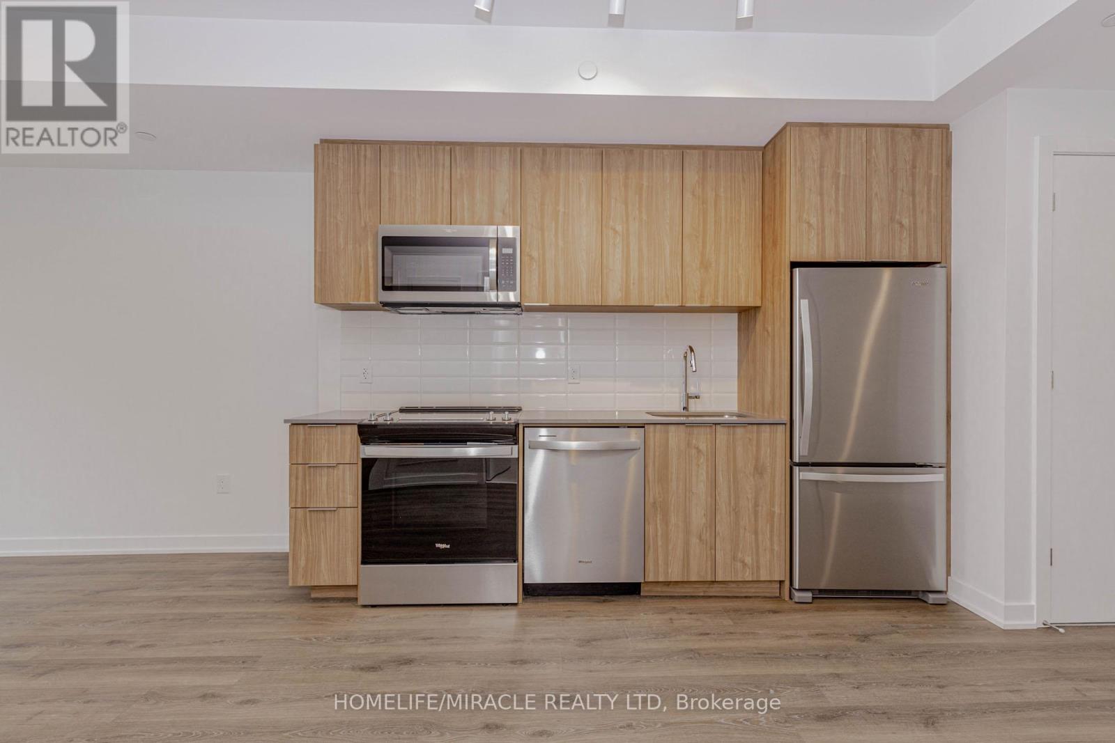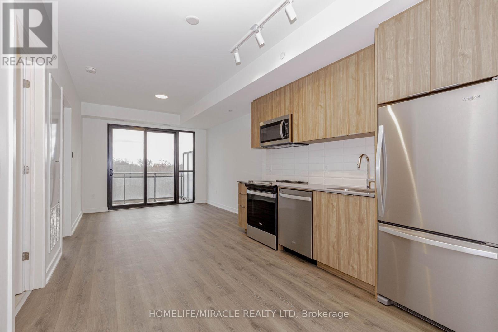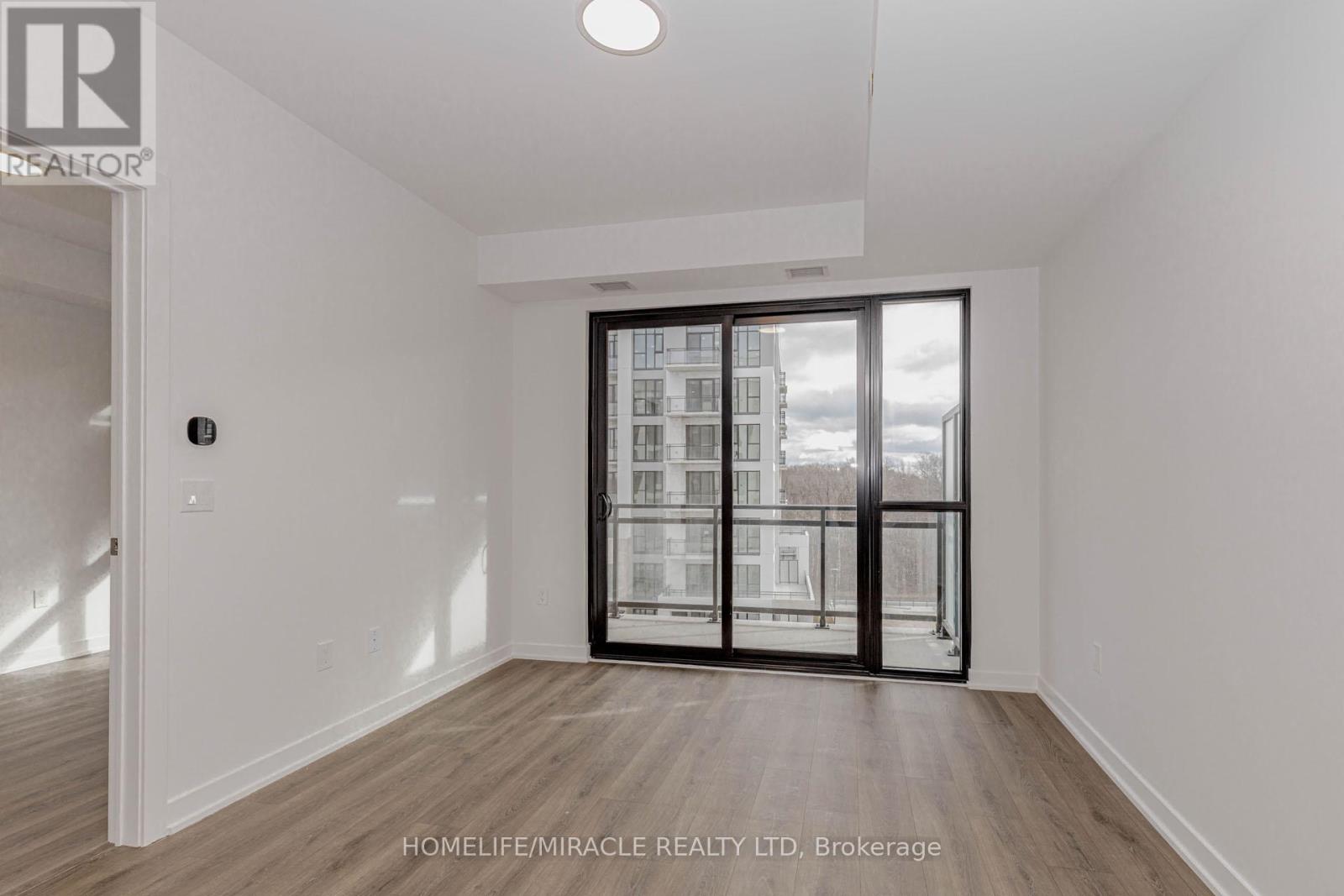 Welcome to this 605+ Sq. Ft. sun filled, brand new, never-lived-in 1-bedroom plus perfectly sized Den condo unit, offering an upscale lifestyle in Milton with unobstructed views of Escarpment from the side balcony. The suite comes with an impressive floor plan with soaring 9-foot ceilings and is fully upgraded with sleek laminate flooring. The open-concept living and dining area flows seamlessly into a functional Den, which serves perfectly as a home office, study room, and even the second Bedroom. A gourmet kitchen featuring elegant granite countertops, an attractive backsplash, European-style cabinetry with valance lighting and a set of stainless steel premium appliances. The spacious Primary Bedroom includes a large window, and a large closet. The 4-piece bath and in-suite laundry complete the interior conveniences. Open private balcony perfect for relaxing, enjoying your morning coffee and Sunlight in Summer time. This unit includes one under ground parking space and a locker. The host of amenities including 3-floor amenity space, fitness centre, yoga studio, media room, co-working lounge, concierge, social lounge, rooftop terrace, green space, pet spa, terrace entertainment area, BBQ's, dining & entertainment lounge and more. Be the first to call this modern and sophisticated suite your home. (id:4555)