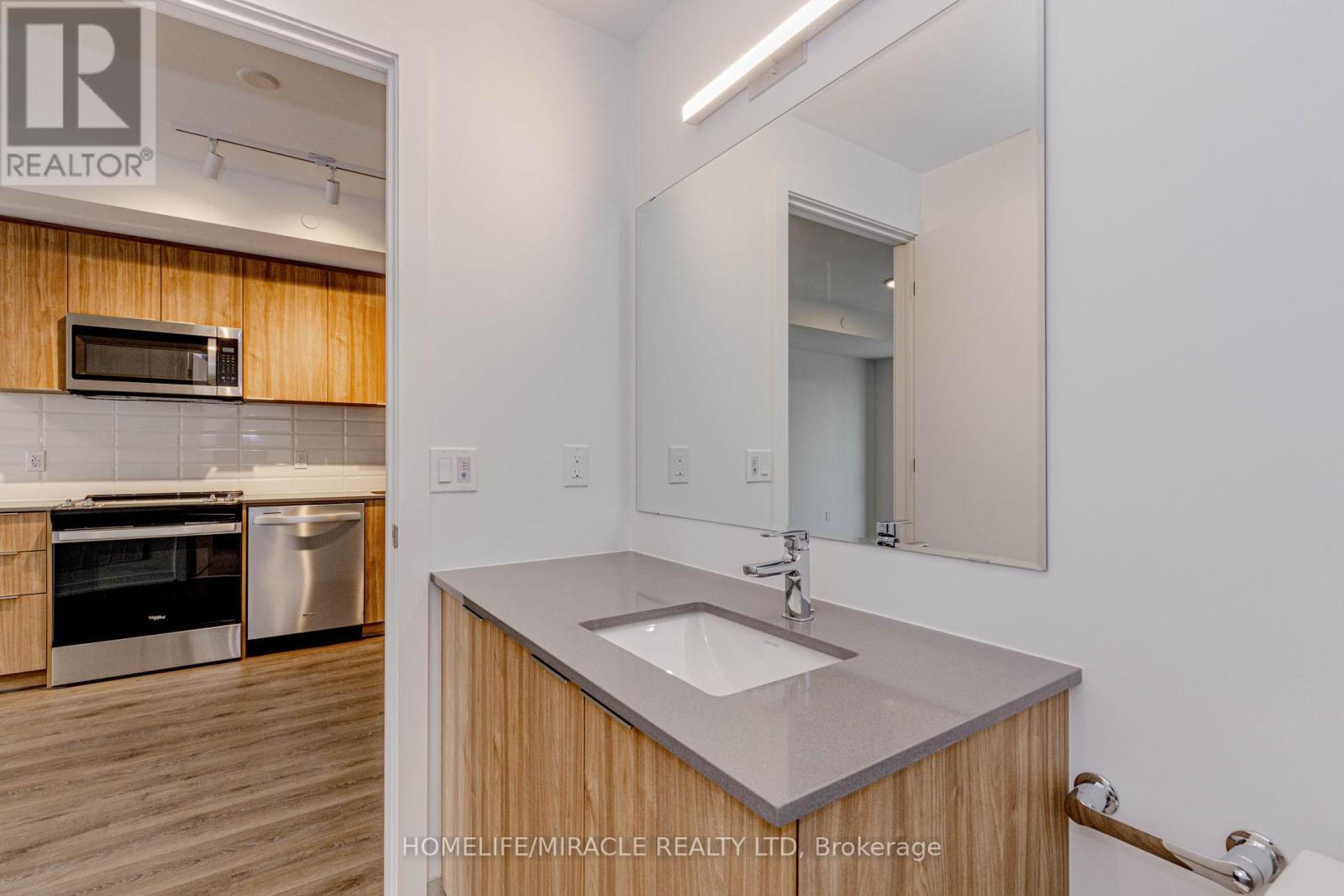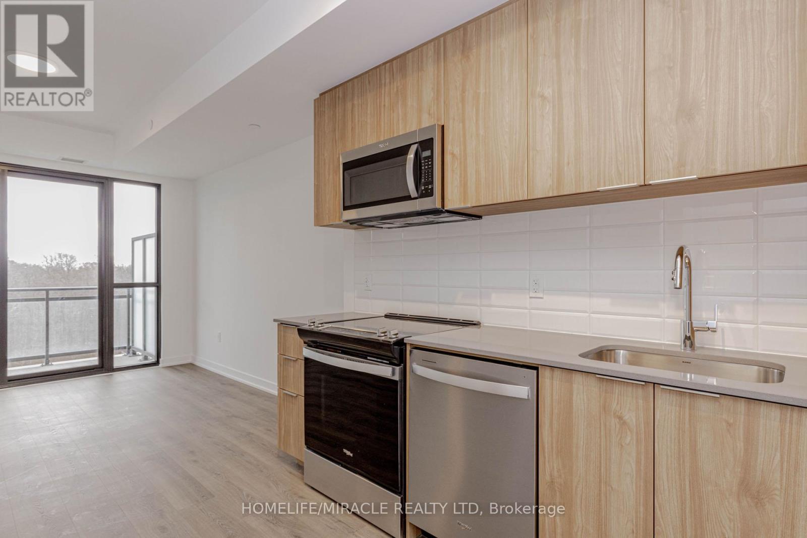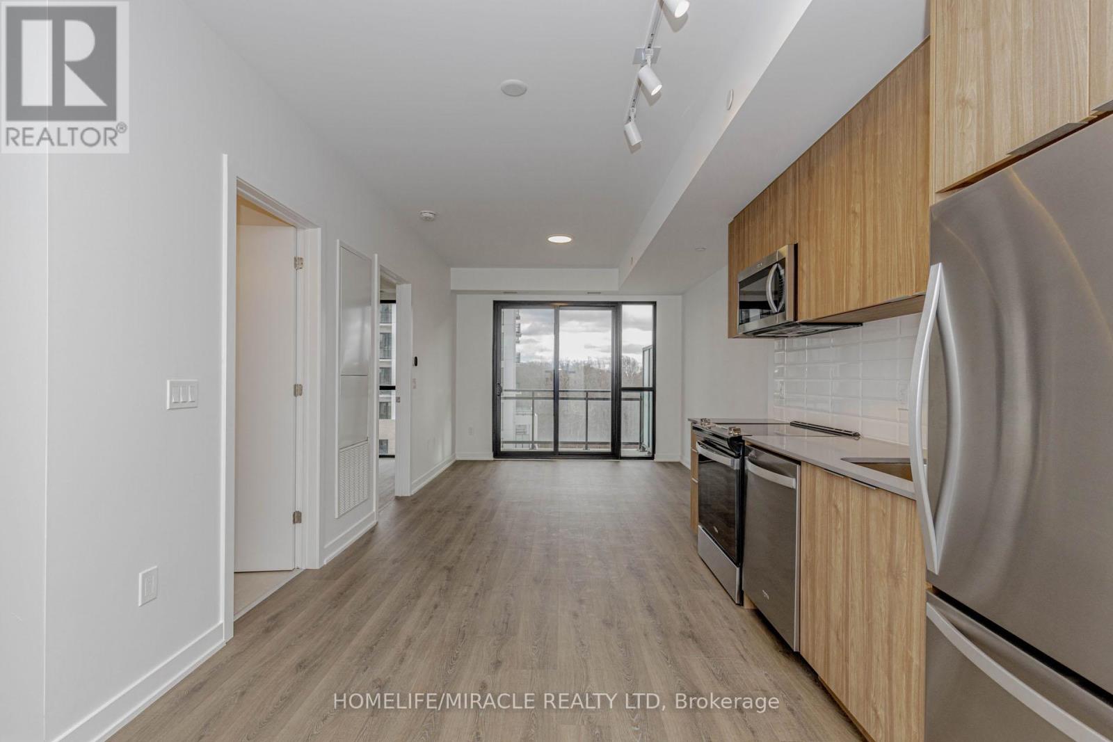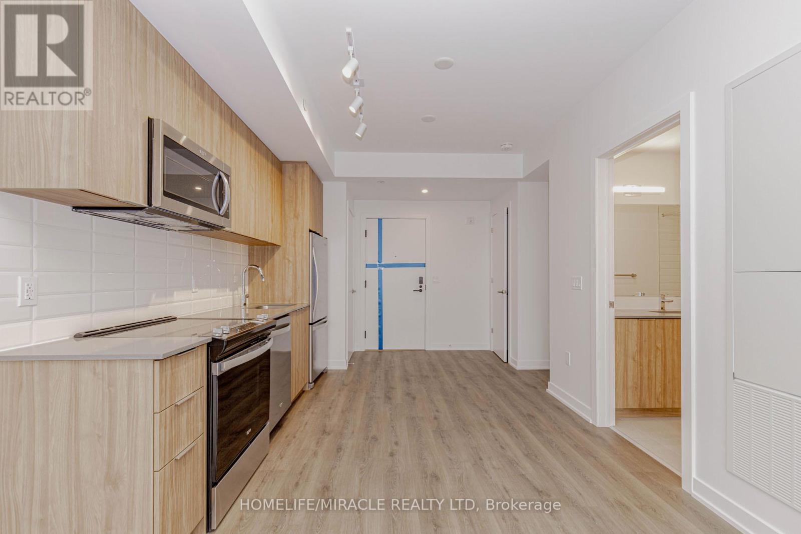 Welcome to this 605+ Sq. Ft. sun filled, brand new, never-lived-in 1-bedroom plus perfectly sized Den condo unit, offering an upscale lifestyle in Milton with unobstructed views of Escarpment from the side balcony. The suite comes with an impressive floor plan with soaring 9-foot ceilings and is fully upgraded with sleek laminate flooring. The open-concept living and dining area flows seamlessly into a functional Den, which serves perfectly as a home office, study room, and even the second Bedroom. A gourmet kitchen featuring elegant granite countertops, an attractive backsplash, European-style cabinetry with valance lighting and a set of stainless steel premium appliances. The spacious Primary Bedroom includes a large window, and a large closet. The 4-piece bath and in-suite laundry complete the interior conveniences. Open private balcony perfect for relaxing, enjoying your morning coffee and Sunlight in Summer time. This unit includes one under ground parking space and a locker. The host of amenities including 3-floor amenity space, fitness centre, yoga studio, media room, co-working lounge, concierge, social lounge, rooftop terrace, green space, pet spa, terrace entertainment area, BBQ's, dining & entertainment lounge and more. Be the first to call this modern and sophisticated suite your home. (id:4555)