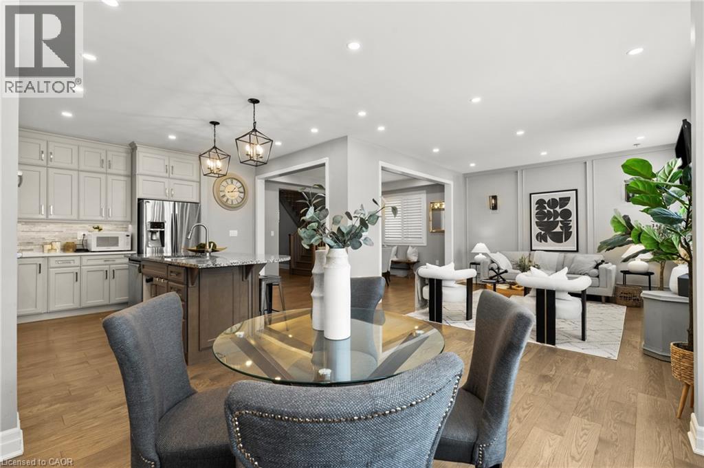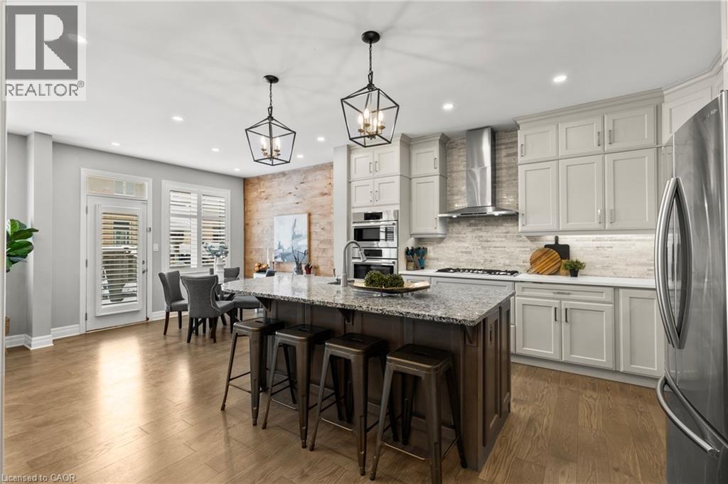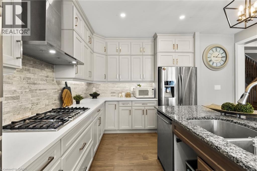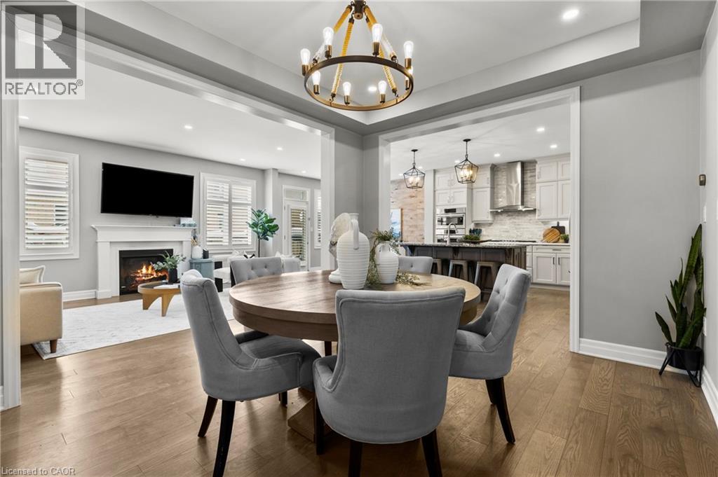 Welcome to this thoughtfully designed Mattamy home, ideally located on a quiet, family-friendly street in Milton. The main level features Engineered hardwood through-out and has a spacious and inviting layout, starting with a main floor office with large windows overlooking the front of the property.As you walk through the large dining room area, you are greeted by a chef-inspired kitchen featuring built-in Bosch appliances and gas range, stone countertops, and ample upgraded cabinetry.The large oversized island and eat-in kitchen provides even more flexibility for the family-perfect for everyday living and entertaining. The open concept family room is spacious and anchored by a gas fireplace, creating a warm and welcoming atmosphere. Upstairs, the home offers four generously sized bedrooms, including a well-appointed primary suite with an oversized walk-in closet and ensuite bath. The remaining bedrooms provide flexibility for growing families, guests, or home office needs, and are conveniently located near another 4pc bathroom and upper level laundry room. The finished basement adds even more flexibility to accommodate your needs, whether a large rec space, office area, or hobby room! Additional highlights include an attached garage and fenced in rear yard. Located close to schools, parks, and amenities, this home delivers comfort, style, and convenience in one of Milton' s desirable neighbourhoods. (id:4555)