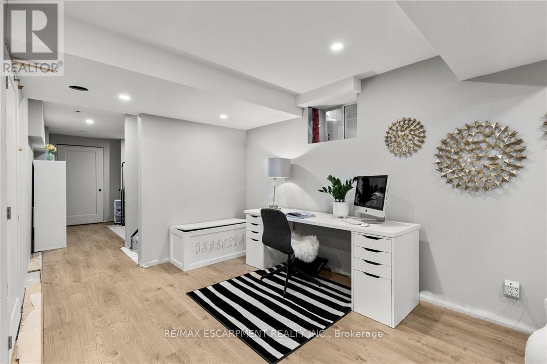 Welcome to this thoughtfully designed Mattamy home, ideally located on a quiet, family-friendly street in Milton. The main level features Engineered hardwood through-out and has a spacious and inviting layout, starting with a main floor office with large windows overlooking the front of the property. As you walk through the large dining room area, you are greeted by a chef-inspired kitchen featuring built-in Bosch appliances and gas range, stone countertops, and ample upgraded cabinetry. The large oversized island and eat-in kitchen provides even more flexibility for the family-perfect for everyday living and entertaining. The open concept family room is spacious and anchored by a gas fireplace, creating a warm and welcoming atmosphere. Upstairs, the home offers four generously sized bedrooms, including a well-appointed primary suite with an oversized walk-in closet and ensuite bath. The remaining bedrooms provide flexibility for growing families, guests, or home office needs, and are conveniently located near another 4pc bathroom and upper level laundry room. The finished basement adds even more flexibility to accommodate your needs, whether a large rec space, office area, or hobby room! Additional highlights include an attached garage and fenced in rear yard. Located close to schools, parks, and amenities, this home delivers comfort, style, and convenience in one of Milton's desirable neighbourhoods. (id:4555)