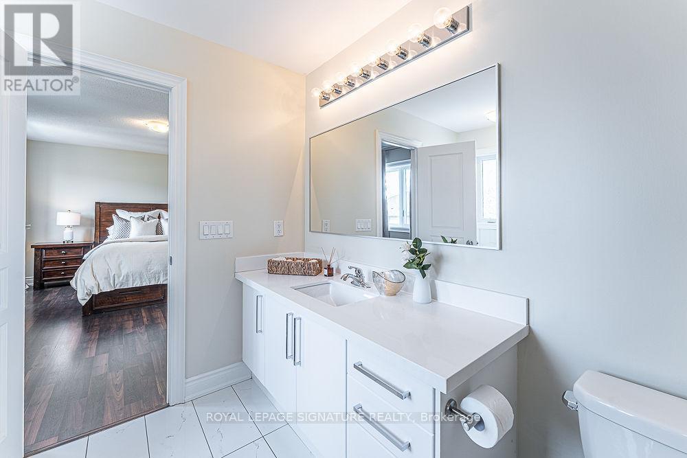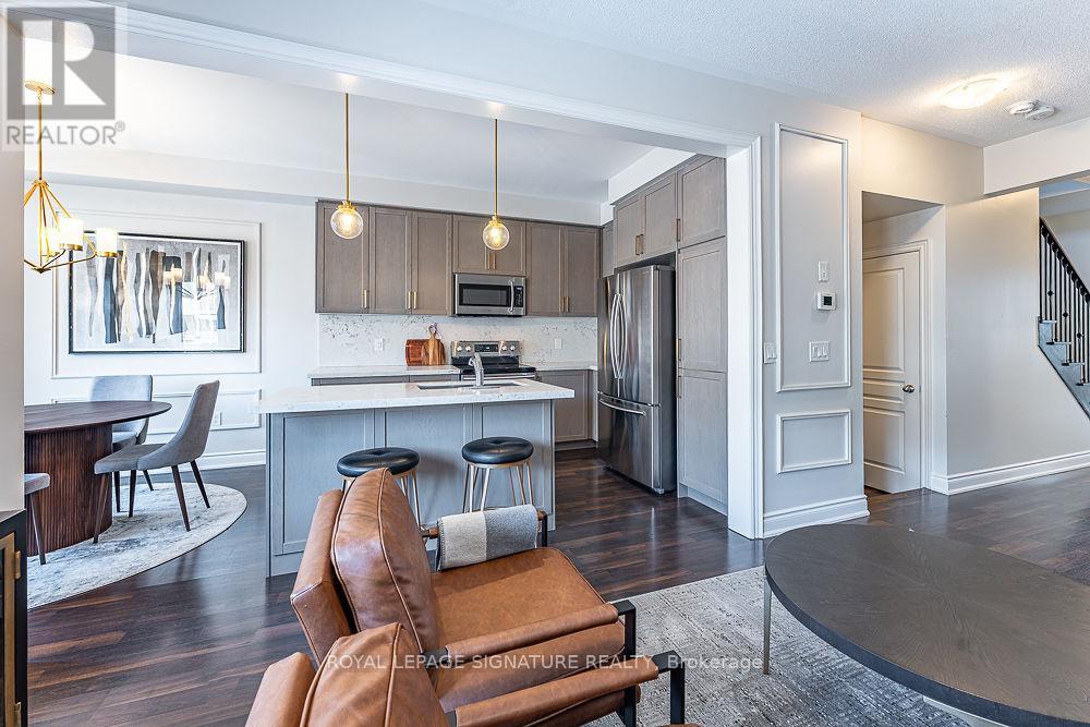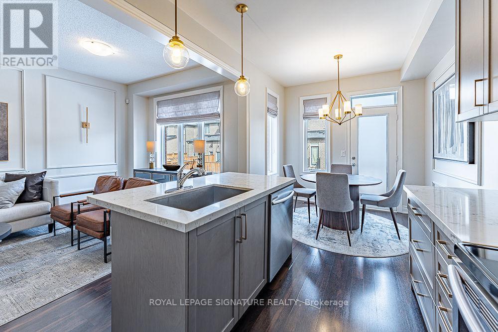 This beautifully maintained 3-bedroom, 3-bathroom townhome offers the perfect combination of modern finishes, functional space, and an unbeatable layout with absolutely no wasted square footage. One of the standout features is a rare main floor office, ideal for today's work from home lifestyle, a kids homework zone or a quiet flex space tucked away from the main living area. The kitchen is designed to impress, featuring, Quartz countertops, Updated cabinetry, Stainless steel appliances and a convenient dedicated dining area within the kitchen, perfect for family dinners or entertaining. The open-concept flow feels spacious yet practical, creating an ideal setting for both everyday living and hosting guests. Upstairs, you'll find three generously sized bedrooms, including a primary suite complete with its own private ensuite bath, offering both comfort and functionality. Additional highlights include, Interior access to the garage, Tasteful updates throughout, Large Unfinished basement with a blank canvas, ready for your custom rec room, gym, additional bedroom, or home theatre. Located in one of Milton's newer developments, this home sits on a quiet court in a highly desirable, family-friendly neighbourhood. You're just minutes from, Top-rated schools, Parks, playgrounds & scenic walking trails, Milton District Hospital, Grocery stores, restaurants, and everyday amenities, Highway 401 & 407 access for commuters, Milton GO Station for easy travel into Toronto. This is the kind of location that offers both community feel and commuter convenience, a rare combination. (id:4555)