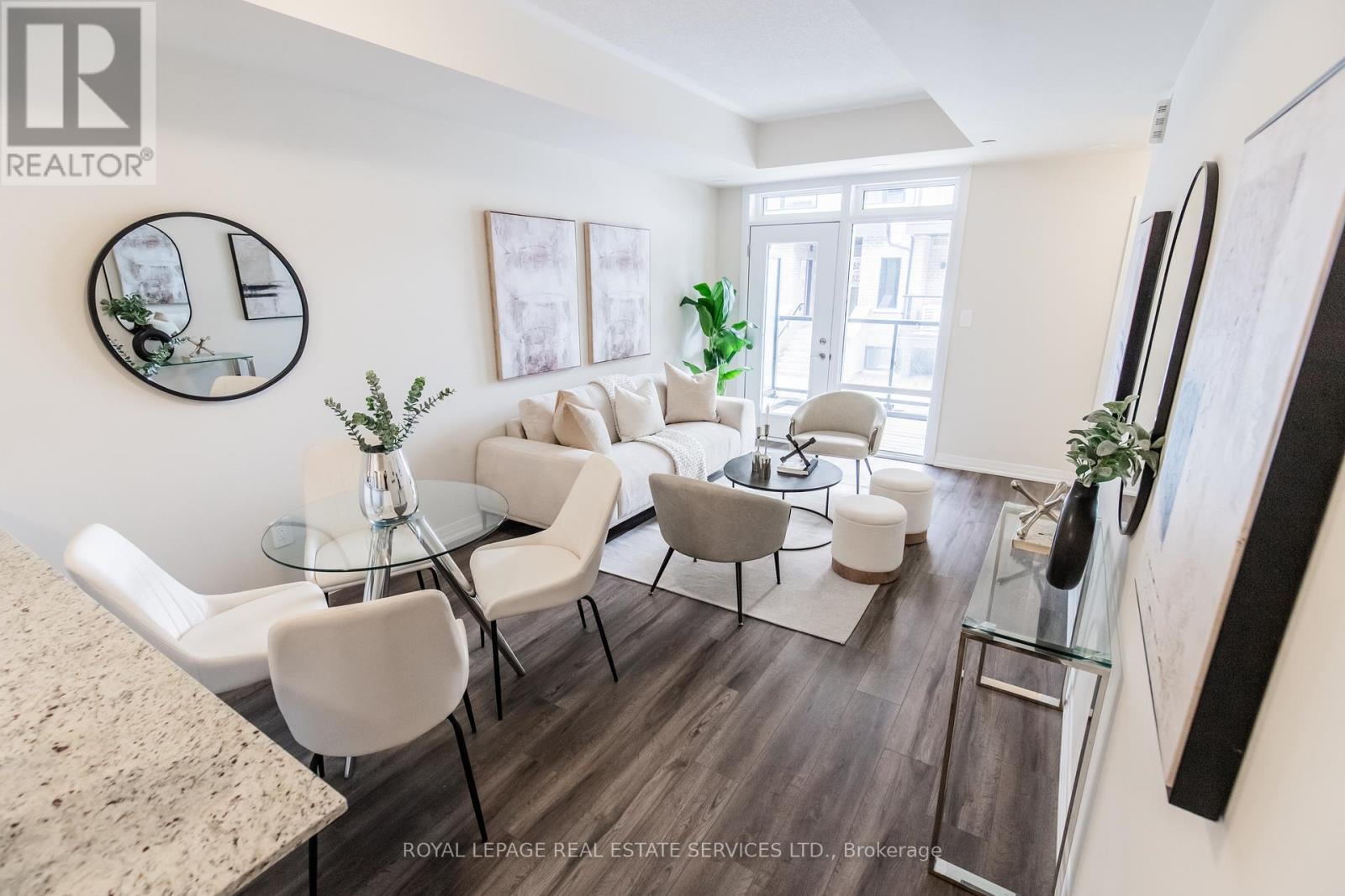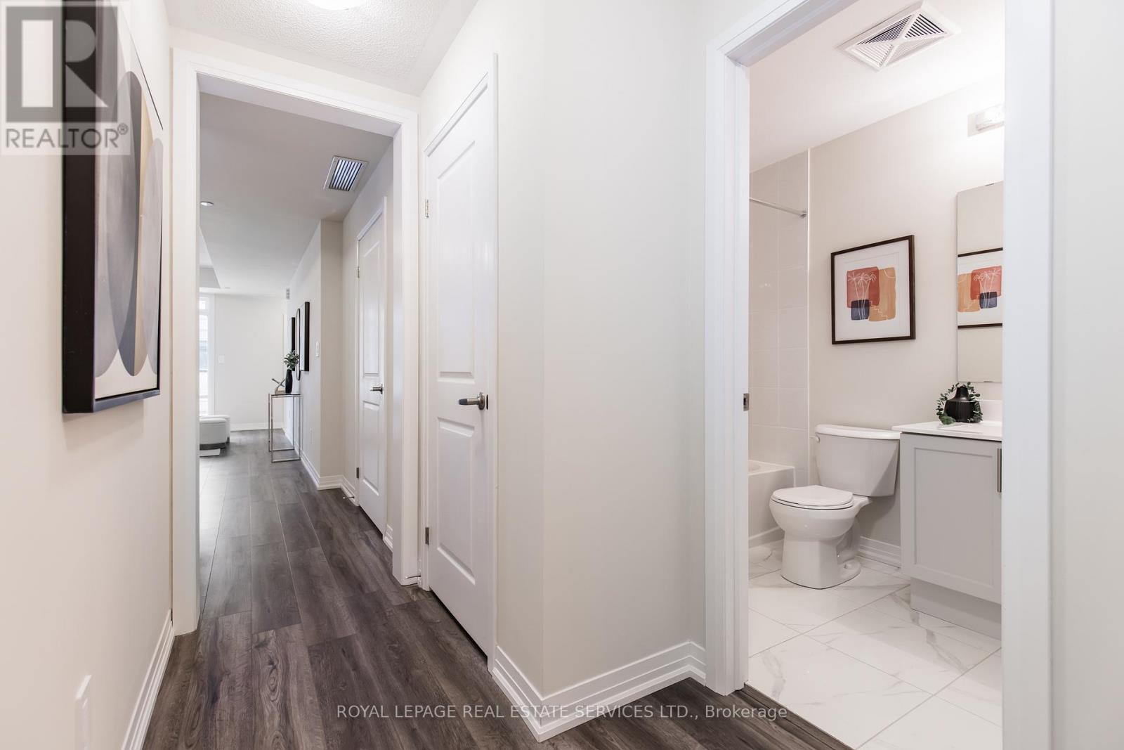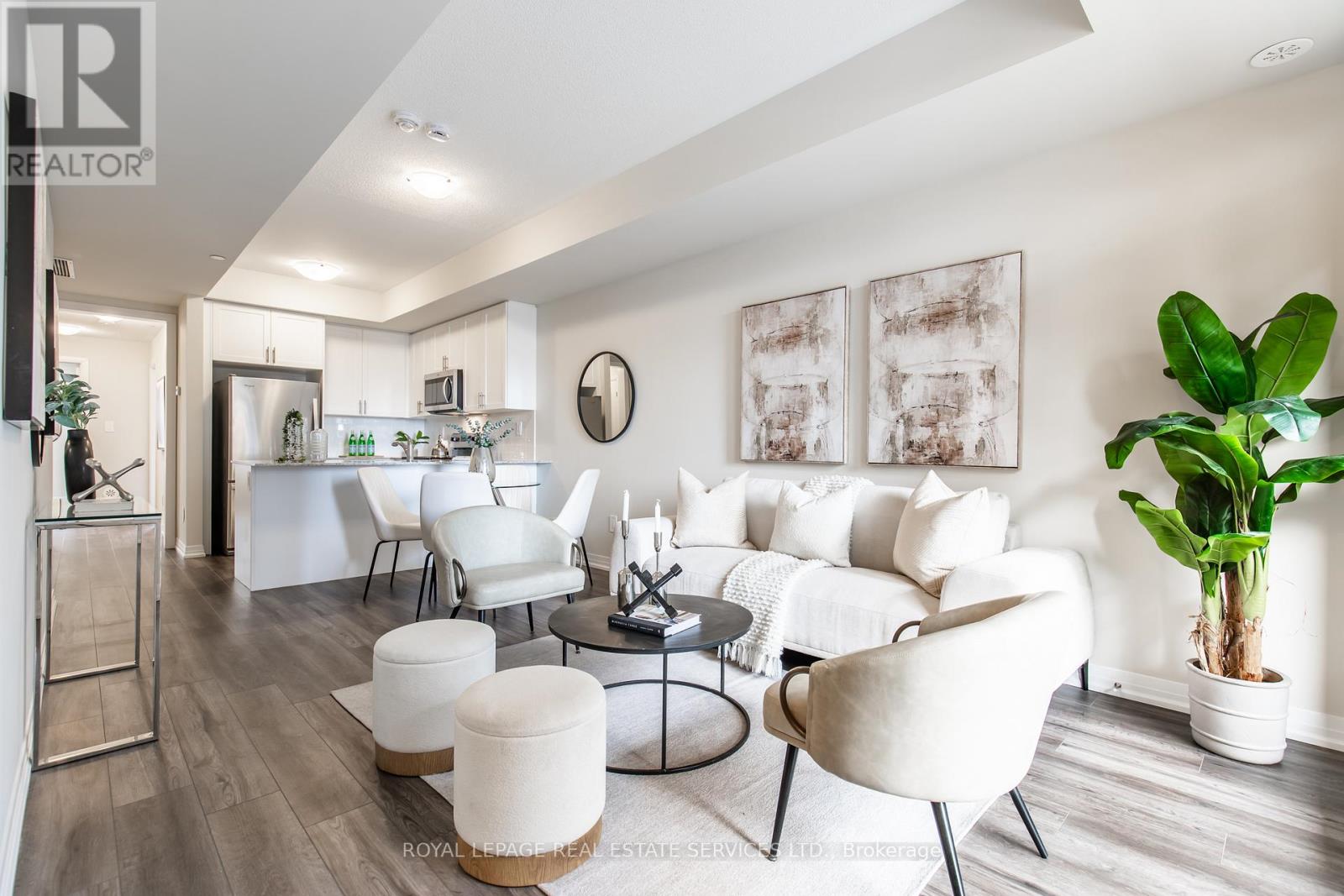 Be the first to live in this 1 year old Fernbrook built, main floor unit featuring 2 bedrooms plus 2 full bathrooms. Carpet free. NO STAIRS! Spacious private balcony. White kitchen featuring a breakfast bar, stainless steel appliances, granite countertops with white subway-tile backsplash, coupled with plenty of room for storage in the large utility closet. The sizeable primary bedroom features a walk-in closet and an ensuite bathroom with a stand-up shower. Comes with 1 parking spot and 1 locker. Ideal family-friendly location. Close to great schools and parks. Close to Sobeys plaza, Hwys, Milton GO, Wilfrid Laurier University Milton Campus, Milton & Oakville Hospitals, Niagara Escarpment, Rattlesnake Point Golf Course and more. Please note unit is no longer staged. It is now empty. (id:4555)