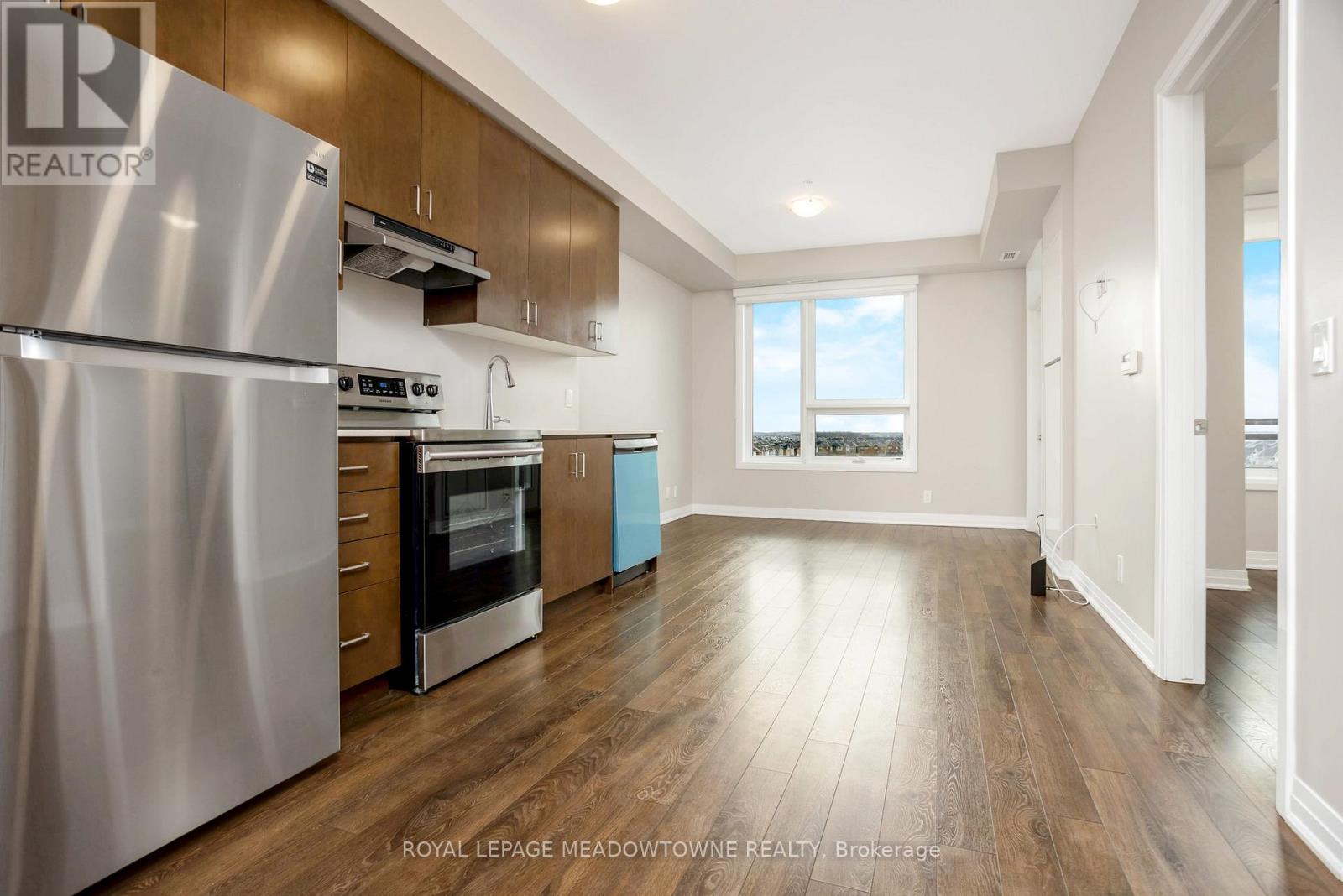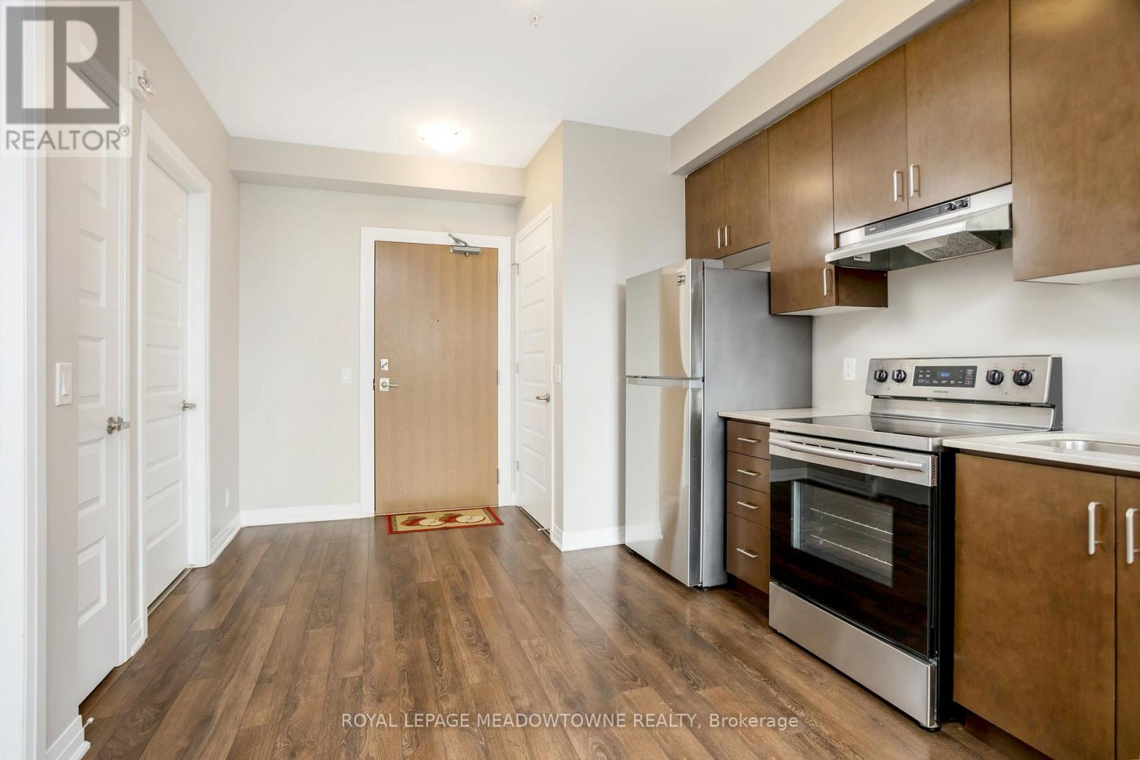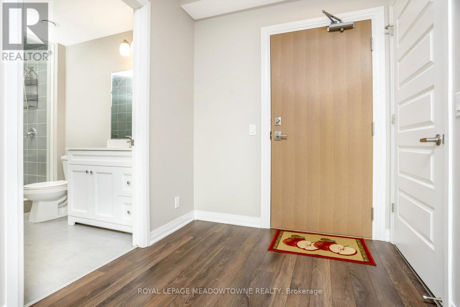 Delightful one-bedroom in Hawthorne South Village Condos. Located in the Ford Neighbourhood of Milton, across from Sobey's plaza, walking trails, and around the corner from elementary and Catholic high school. Laminate flooring throughout, plus renovated washroom with new tall vanity. Quartz countertops and stainless steel appliances. Covered balcony with clear South views. Extended cabinets for extra storage. Unit includes ensuite laundry plus one parking space (A-96) and locker (#312). (id:4555)