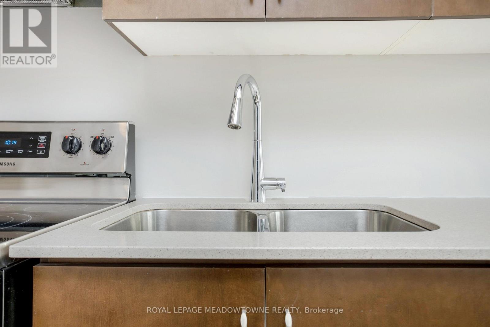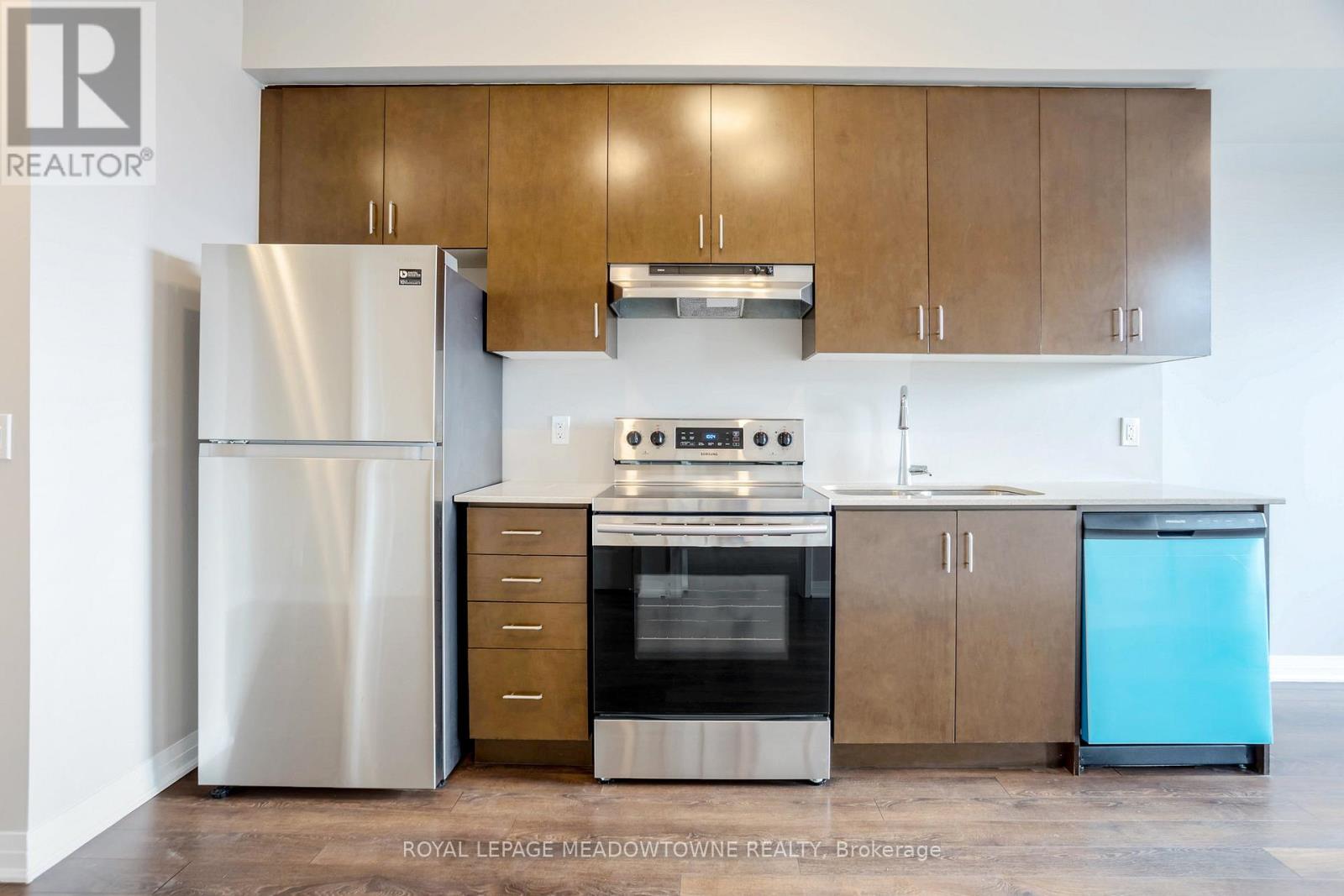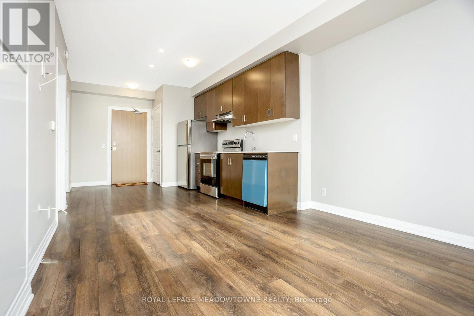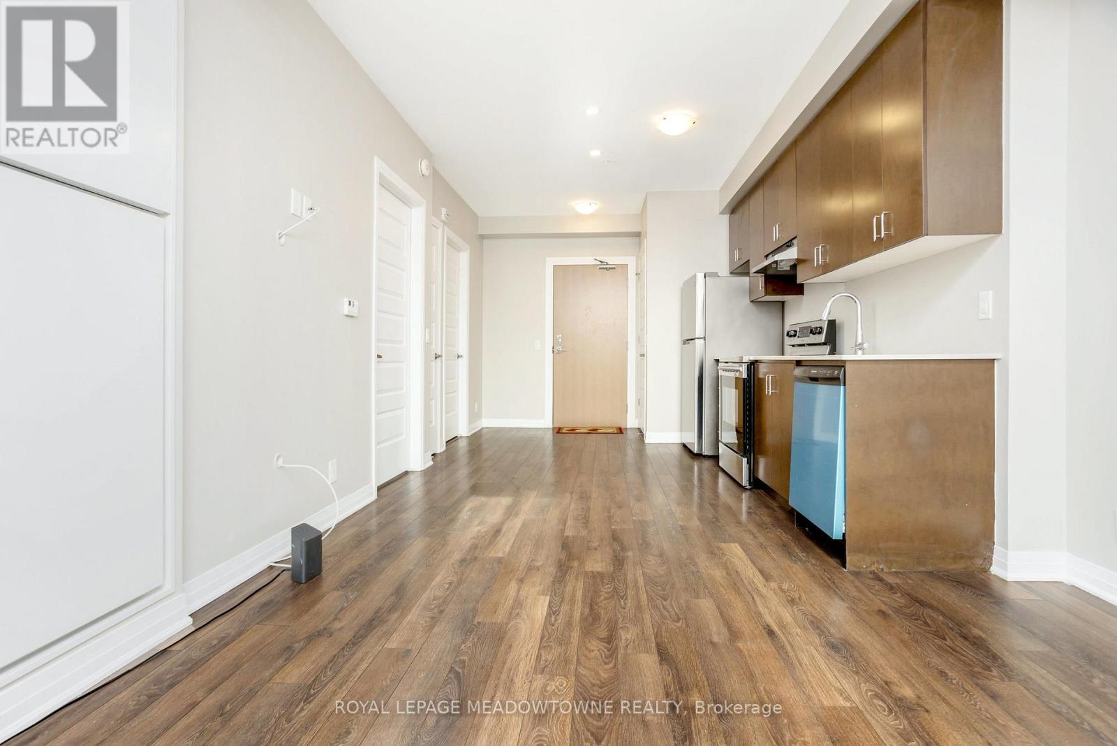Delightful one-bedroom in Hawthorne South Village Condos. Located in the Ford Neighbourhood of Milton, across from Sobey's plaza, walking trails, and around the corner from elementary and Catholic high school. Laminate flooring throughout, plus renovated washroom with new tall vanity. Quartz countertops and stainless steel appliances. Covered balcony with clear South views. Extended cabinets for extra storage. Unit includes ensuite laundry plus one parking space (A-96) and locker (#312). (id:4555)