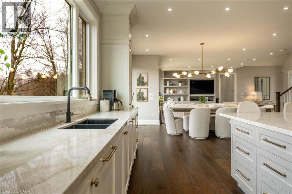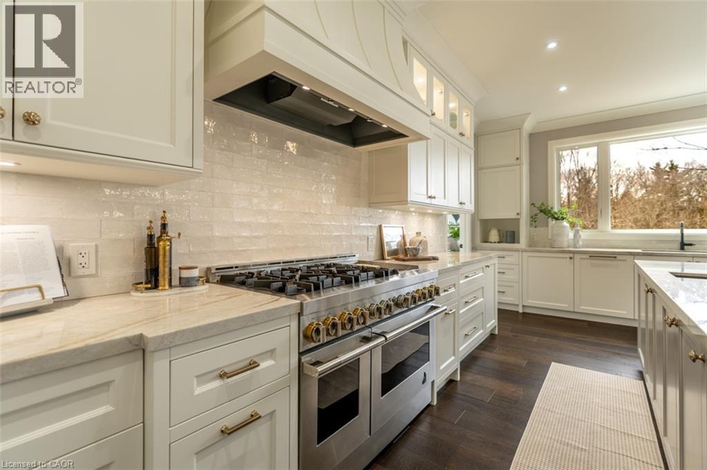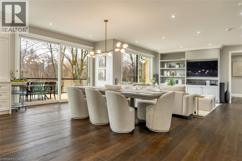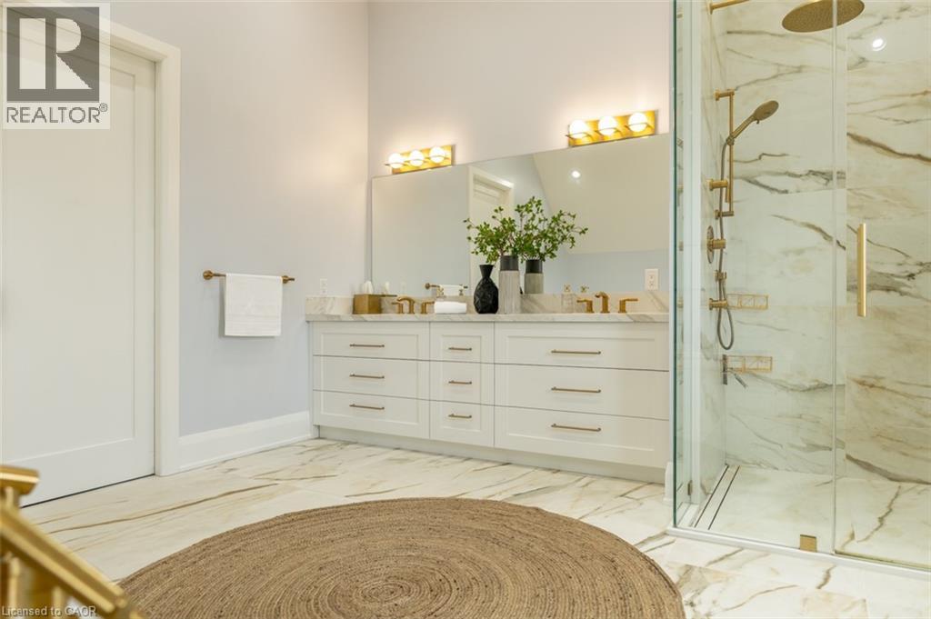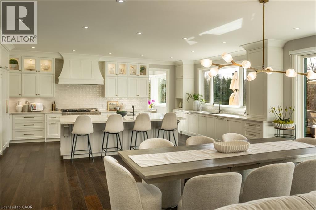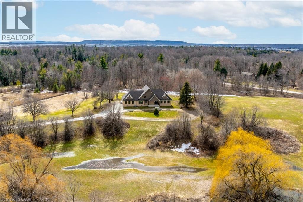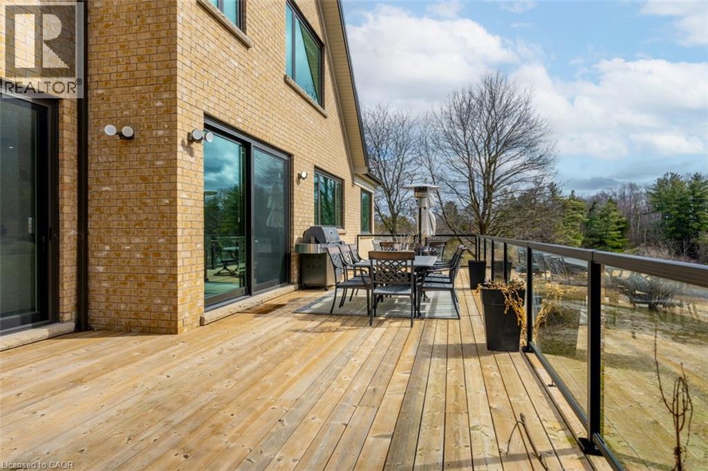 Welcome to 8656 Esquesing Line, a custom-built country estate on a beautiful 7.5-acre property just minutes from Milton, Highway 401, shopping, dining, and daily essentials. Built in 2021, this home offers 3,154 sq.ft. of above-grade living space and a unique blend of refined design, modern comfort, and peaceful rural living. Surrounded by open space & natural beauty, the property features ample parking, an oversized main garage, and an additional built-in lower garage perfect for hobbies, storage, recreational equipment, or future needs. Inside, upscale finishes and bold architectural details create a warm, sophisticated atmosphere. Premium Kolbe windows flood the home with natural light, while custom millwork adds elegance and character. The kitchen is a true centrepiece, with imported quartzite countertops, a large chef-inspired island, full-height cabinetry, illuminated display cabinets, and premium integrated appliances. The bedroom layout is equally impressive, with dressing areas and spa-like en-suites featuring curbless glass showers, quartz-topped vanities, custom cabinetry, and large-format tile. The primary retreat is privately located and includes a vaulted ceiling, a custom dressing room with a centre island and hidden storage, and a 5-piece ensuite with radiant-heated floors, a soaker tub, and an oversized curbless shower. The unfinished lower level is framed and insulated, with nearly 9-foot ceilings, a bathroom rough-in, direct walkout to the patio and hot tub area, and separate access to its own lower garage, offering potential for expanded family living, recreational space, or future income opportunities. Outside, the 700 sq.ft. rear deck with stunning panoramic views seamlessly extends the home, while the hot tub and expansive grounds create the perfect setting for entertaining and relaxing year-round. An exceptional opportunity to own a truly special country property, this is a must-see home for buyers seeking luxury, privacy, and lasting value. (id:4555)