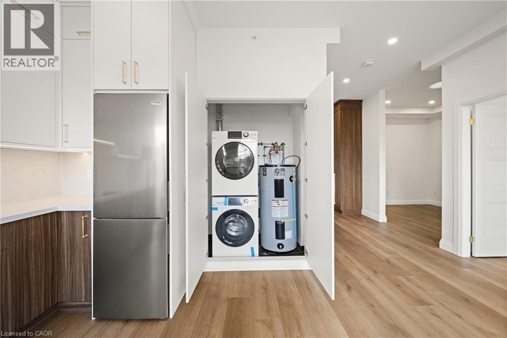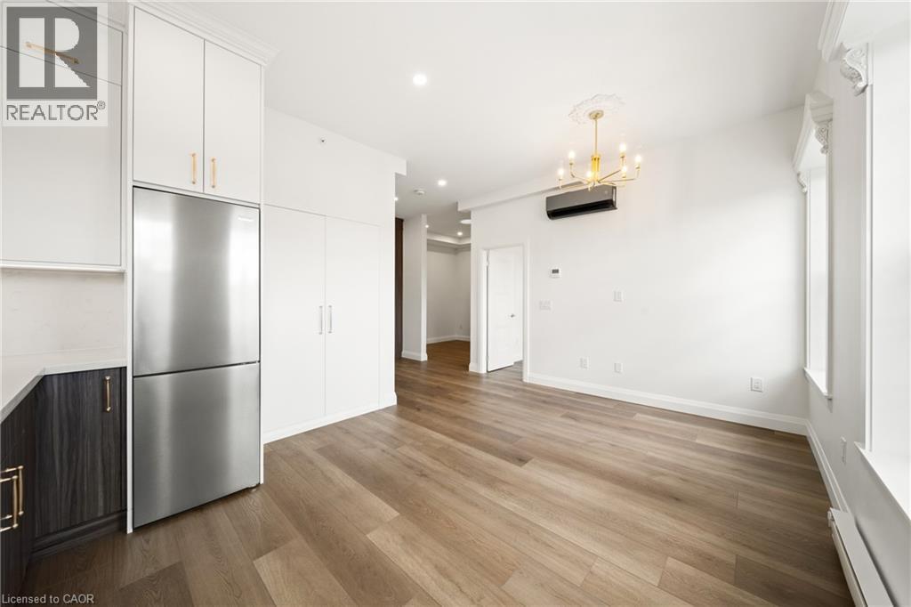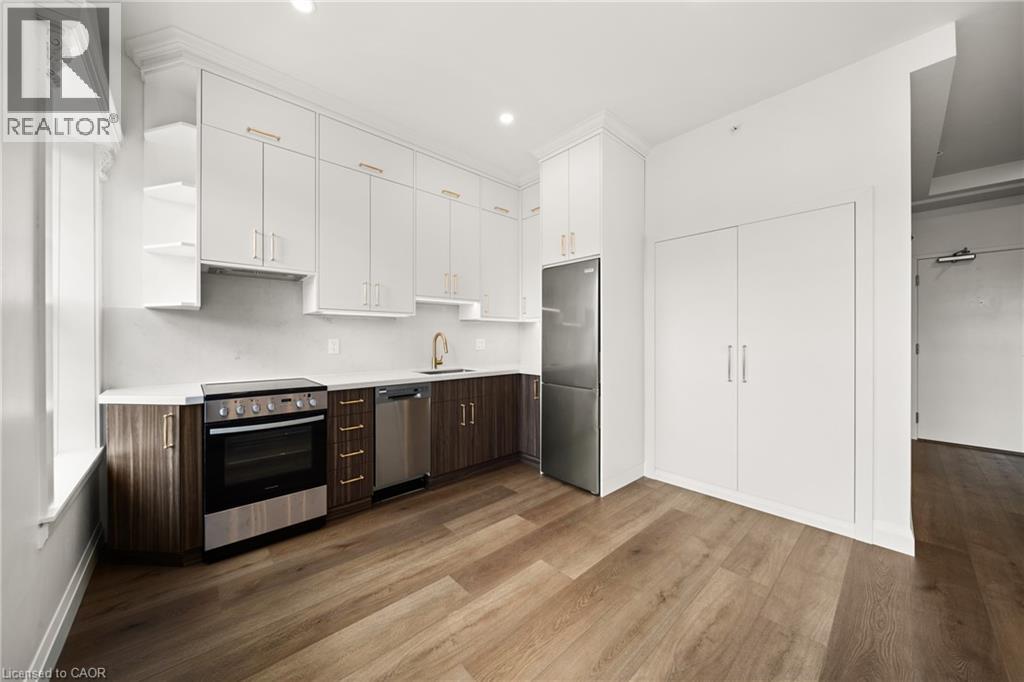 Step into something extraordinary. This brand-new, never-lived-in 1-bedroom + den unit in the heart of historic downtown Milton is where old-world charm collides with bold, modern luxury. Framed by a striking sage green door, the vibe starts before you even enter. Inside, its all about rich hardwood floors, custom marble-tiled bathrooms with heated floors, luxury crown molding, and gold-accented lighting that nods to the buildings timeless character while delivering sleek, high-end appeal. The modern kitchen is made to impress, with stainless steel appliances, soft-touch cabinetry, and oversized window sills that flood the space with natural light. The open layout and high ceilings bring serious loft energy, while the versatile den offers space to create whether its a home office, guest nook, or cozy media zone. Set in a boutique building with a beautifully curated common hallway, you're surrounded by heritage vibes and design-forward finishes from the ground up. Live steps from La Toscana, Pasqualino, the Farmers Market, schools, parks, and major highways. This is more than a place to live- its a lifestyle with character and class. (id:4555)