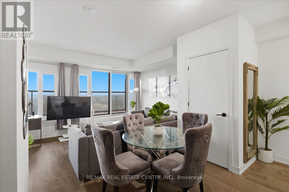 Is a stunning, well-kept, veyr bright, airy, 2 bedroom/2 Washroom mid-level Milton area condo that's perfectly situated on the South/East corner of HWY 25 and Derry in popular Coates neighbourhood of Milton close to plazas, Food Basics, restaurants, pub. transit, community parks, schools, trails, Milton Sports Centre, Milton District Hospital, Milton Mall and list goes on and on. The Connectt development by Lindvest has the distinction of being one of Milton's first and rare high-rise condominiums with great though and investment placed into lifestyle, conveniences and security. This particular unit comes with ground-breaking state-of-the-art amenities such as a full sized gym, yoga rooms, 24 hour concierge, party room, bike storage, pet spa, guest suites, party rooms, swimming pool, rooftop BBQ and cabannas, free wi-fi, business centre and so much more. The unit itself features decadent laminate flooring, sizeable kitchen w/backsplash, complimenting quarts countertops, stainless steel appliances, 9 ft ceilings throughout, 2 full bathrooms, stackable in-unit laundry, opem concept living w/ combined family and dining rooms, a large balcony, exclusive locker and 1 undergrlund parking spot. (id:4555)