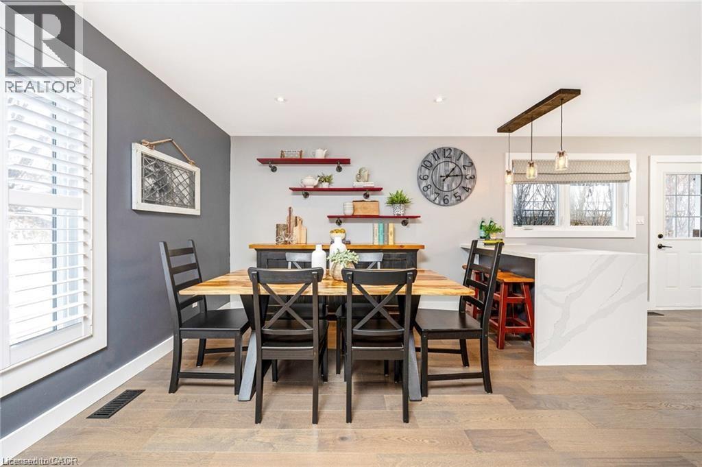 Welcome to this STYLISH 3+1 Bedroom TURN-KEY FULLY RENOVATED BUNGALOW in Sought-After Old Milton that is located on a fabulous 50' x 132' lot! It begins with charming curb appeal and, as you enter the foyer with the beautiful glass railing, you will immediately notice the OPEN CONCEPT FLOOR PLAN. There is a living room featuring a beautiful picture window with California shutters, a dining room and stunning kitchen with under cabinet lighting, stainless steel appliances, island with breakfast bar, waterfall quartz counter, tile backsplash and walkout to the private yard. There are 3 bedrooms and a renovated 3-pc bathroom with separate glass shower on this level. The FULLY FINISHED BASEMENT features wide open space with massive windows to let in the natural light, new carpeting in the recreation room (2025), laundry, FOURTH BEDROOM and updated 4-pc bathroom. There is a large storage room, pot lights and a bonus 220VAC electrical connection. The rear yard has so much space for the KIDS to just ROAM, along with a massive new covered porch and concrete patio, gas BBQ hook up, two sheds and a hot tub. Additional features include: wide plank hardwood flooring throughout the main floor, new windows, new fencing on east and south sides of yard, PARKING for FIVE CARS (one in garage and four in driveway), access to backyard from garage. Close to all amenities - walk to public and Catholic schools, parks, Mill Pond, Farmers Market, Coffee, Restaurants, Transit and Milton's vibrant downtown. This impeccably maintained home has it ALL ... Simply Move In and ENJOY! *Please see attached for a full list of features and upgrades. ** Carpet in basement bedroom will be replaced before closing. *** OPEN HOUSES: SAT & SUN, MARCH 28 and 29 from 2 - 4 pm (id:4555)