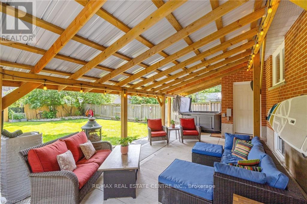 Welcome to this STYLISH 3+1 Bedroom TURN-KEY FULLY RENOVATED BUNGALOW in Sought-After Old Milton that is located on a fabulous 50' x 132' lot! It begins with charming curb appeal and, as you enter the foyer with the beautiful glass railing, you will immediately notice the OPEN CONCEPT FLOOR PLAN. There is a living room featuring a beautiful picture window with California shutters, a dining room and stunning kitchen with under cabinet lighting, stainless steel appliances, island with breakfast bar, waterfall quartz counter, tile backsplash and walkout to the private yard. There are 3 bedrooms and a renovated 3-pc bathroom with separate glass shower on this level. The FULLY FINISHED BASEMENT features wide open space with massive windows to let in the natural light, new carpeting in the recreation room (2025), laundry, FOURTH BEDROOM and updated 4-pc bathroom. There is a large storage room, pot lights and a bonus 220VAC electrical connection. The rear yard has so much space for the KIDS to just ROAM, along with a massive new covered porch and concrete patio, gas BBQ hook up, two sheds and a hot tub. Additional features include: wide plank hardwood flooring throughout the main floor, new windows, new fencing on east and south sides of yard, PARKING for FIVE CARS (one in garage and four in driveway), access to backyard from garage. Close to all amenities - walk to public and Catholic schools, parks, Mill Pond, Farmers Market, Coffee, Restaurants, Transit and Milton's vibrant downtown. This impeccably maintained home has it ALL ... Simply Move In and ENJOY! *Please see attached for a full list of features and upgrades. (id:4555)