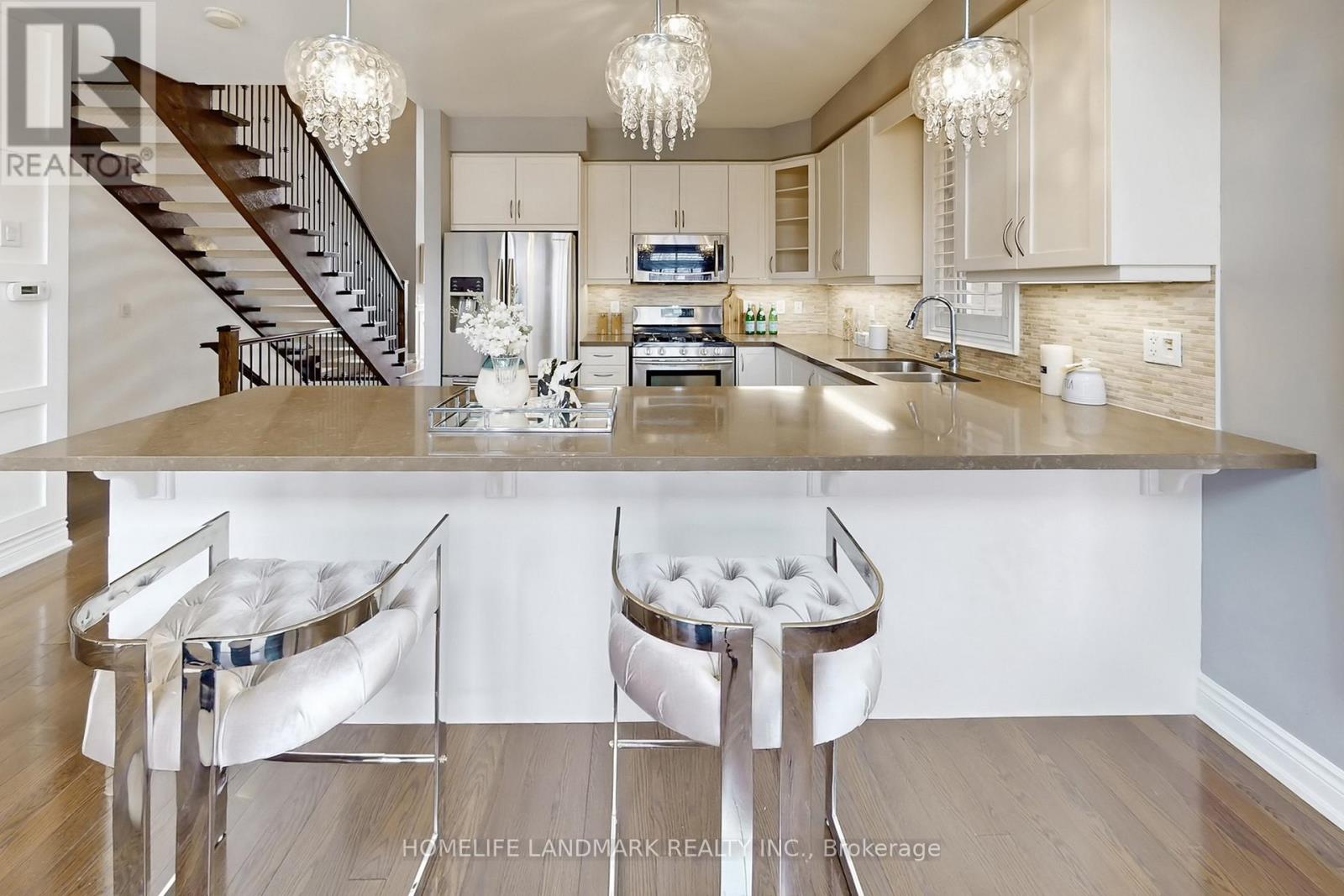 Welcome to one of Milton's most sought-after communities! Situated on a rare 43-ft wide lot, this beautifully designed bungaloft offers 3+2 bedrooms and 3 bathrooms, showcasing an elegant stone and stucco exterior with professionally landscaped front yard that exudes curb appeal.Step inside to discover refined finishes throughout, including 9-ft ceilings, 8-ft doors, rich hardwood flooring, and a striking open-rise oak staircase with wrought iron pickets. The home welcomes you with a formal living and dining area-perfect for both entertaining and everyday living.A standout feature of this loft-style home is the impressive approx. 17-ft open-to-above foyer and hallway, creating a dramatic sense of space and modern sophistication. At the rear, the upgraded gourmet kitchen seamlessly connects to the spacious family room, forming a bright and functional open-concept layout ideal for today's lifestyle. The family room is truly a showstopper, featuring a vaulted ceiling with two skylights and Hunter Douglas motorized blinds, filling the space with natural light while offering comfort and convenience.The main level includes two generously sized bedrooms and two full bathrooms, highlighted by a luxurious primary retreat with a private ensuite. Upstairs, you'll find an additional bedroom and a versatile loft space-perfect as a home office, lounge, or media area.A partially finished basement provides additional living space and excellent future potential.Unbeatable location-just steps to Milton Sports Centre, parks, top-rated schools, and all essential amenities. This is a rare opportunity to own a stylish and spacious home in a prime family-friendly neighborhood. (id:4555)