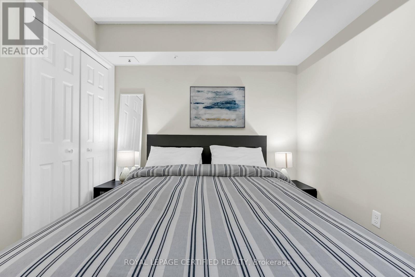 Welcome to this move-in ready 1-bedroom + den condo in a highly convenient and welcoming community! Located in The Bristol on Main Condos, you'll be just steps from shopping, the FirstOntario Arts Centre, community and leisure facilities, transit, major highways, parks, trails, conservation areas, and all essential amenities.This bright and inviting unit features an open-concept kitchen that flows seamlessly into a sun-filled living area, a spacious bedroom with a large window, a generously sized balcony with extra storage space, and a versatile den-perfect for a home office or quiet retreat. The 4-piece bathroom is conveniently located near the in-suite laundry. Enjoy Pot lights with sleek modern trim detailing in the living room and laminate flooring throughout the entire unit. Residents have access to excellent building amenities including a fitness room, party room, underground parking, car wash, and an exclusive locker/storage space. Additional parking can be purchased through the condo corporation.Whether you're looking for your next home or a smart investment, this condo is a great choice! (id:4555)