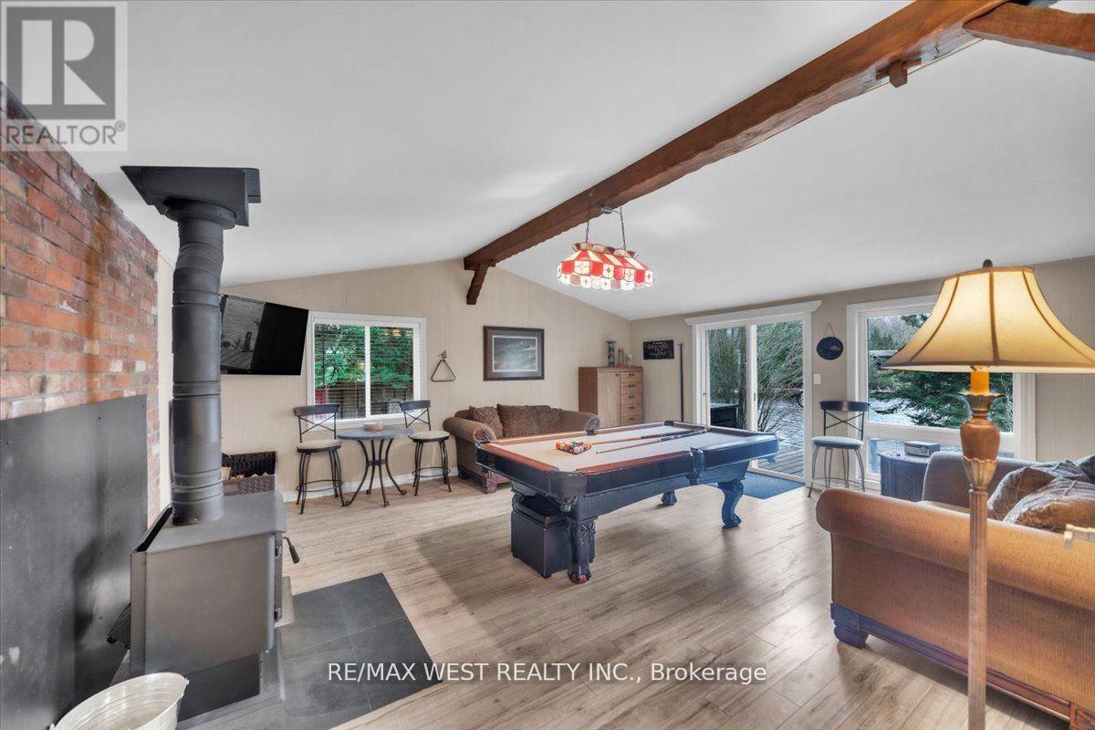 Stunning Lakefront Viceroy Bungalow on Haliburtons Premier 5-Lake Chain - Welcome to this breathtaking 3-bedroom, 2-bathroom Viceroy bungalow offering 2,147 sq ft of beautifully renovated living space, perfectly positioned on a premium, unobstructed 150 ft lakefront lot. This home blends elegant design with the ultimate waterfront lifestyle in one of Haliburtons most coveted locations. Step inside and be captivated by the open-concept layout featuring soaring vaulted ceilings and expansive windows that frame panoramic lake views from all principal rooms. The heart of the home is a gourmet kitchen boasting quartz countertops, a large island, and a seamless flow into the formal dining room, which walks out to a lakeside deck perfect for entertaining or enjoying serene morning coffee. The Huge formal Livingroom overlooks the lake and is off the dining room - great for large family gatherings. Efficient Napoleon propane stove heats the entire house. The spacious great room is anchored by a Wood Burning Stove fireplace, creating a cozy, stylish space to relax, with another walkout to your outdoor oasis. The designer main bathroom off Master and main-floor laundry and 2nd full bath off 2nd foyer entrance, add both comfort and convenience. Outside, the professionally landscaped grounds feature lush perennial gardens, multiple decks, and a crib dock for direct water access. Driveway parks 5 cars. This rare offering sits directly on the Haliburton 5-lake chain, providing over 30 miles of pristine boating and adventure. Two marinas are conveniently nearby, along with local stores and quick highway access via a private laneway. Wake up each morning to stunning easterly lake views and the soothing call of loons. This property truly embodies tranquil lakeside living with refined style. (id:4555)