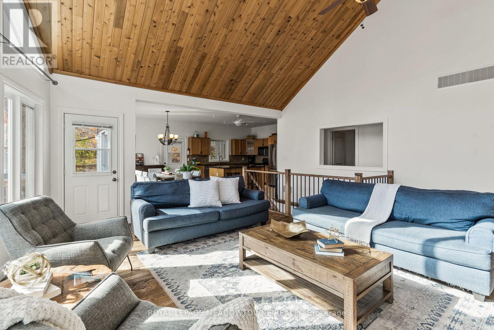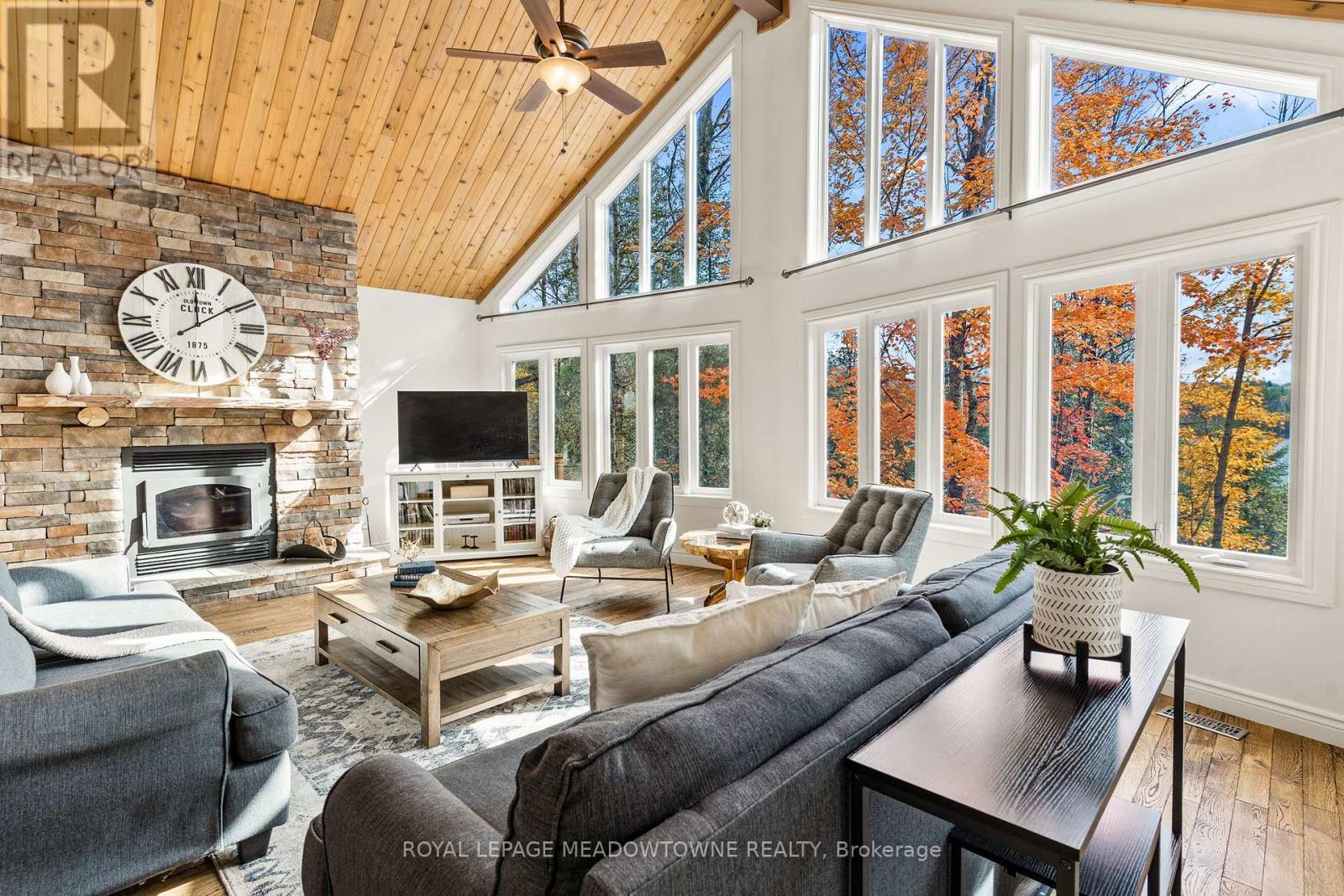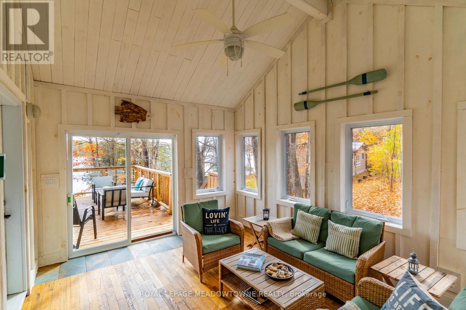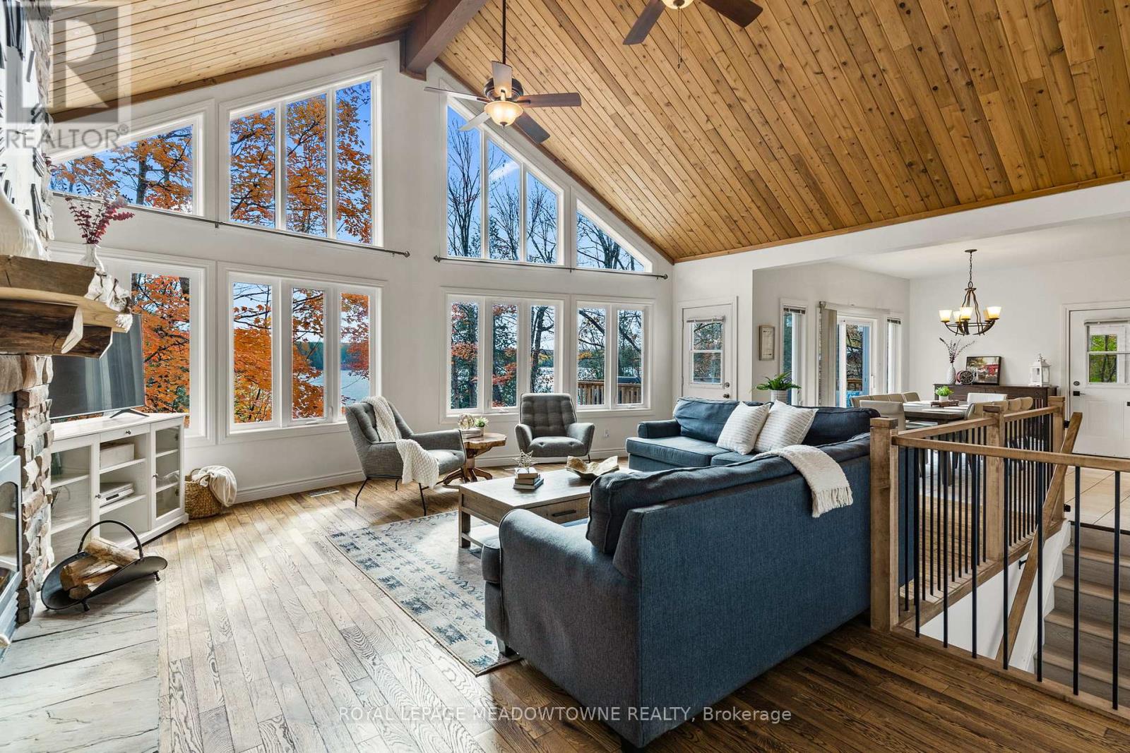 Don't miss this opportunity to own your own slice of Paradise. Prime waterfront, Gorgeous Views. This inviting lakeside retreat offers 5 bedroom and 3 baths with uncompromised luxury minutes from the Village of Minden and 2 hours from the GTA in the amazing Haliburton Highlands. Experience year-round comfort while hosting family, friends, or extended stay guests with over 3400 sqft of turnkey living space. (everything included*)As you walk in the front door your entranced by the stunning views, vaulted ceilings, an abundance of windows, stone fireplace, gourmet kitchen, walkouts, from both levels to further remind you of lakeside living at its finest. This home was made for gathering and entertaining whether around the oversized granite island, the expansive dining room table or in front of the fireplace in family room, memories are sure to be made. Gourmet Kitchen boasts an abundance of cupboards, pantry, bar fridge, SS appliances and rich granite. A cozy Haliburton room is off the kitchen to cuddle in with a good book or a quiet conversation over a glass of wine. Easy Access to the large outdoor deck is available from family room, dining room or Haliburton room, all with amazing views of South Lake. Enjoy your morning coffee on the cozy private balcony off the master bedroom which also offers a walk-in closet and ensuite bath. Finishing this level is 2 additional spacious bedrooms and a main bathroom. Centre stairs take you to the "new" fully finished lower level we call the "Family & Friends Fun Zone" with spectacular views from the expansive windows boasting another 2 oversized bedrooms, bathroom, laundry, open concept games room with pool table and ping pong, family room and a walk out to your very private outdoor oasis. Inviting hot tub on a snowy winter Night? Firepit to enjoy year-round, and a dock ready for some boating, swimming, canoe or kayaking. Don't miss this Gem with year-round road access, close to town and EVERYTHING ISINCLUDED*! (id:4555)