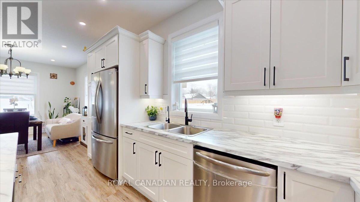 Don't miss this rare opportunity! This offer potentially severs the lot: one features a modern, move-in-ready home, and the second provides incredible potential for future development, investment, or expansion. Subject to municipal approvals, there may be potential for lot severance, redevelopment, or construction of an additional dwelling on the property. Recently upgraded rain gutter system and new downspouts installed, including the garage. Located on a large corner lot (approx. 116.99 x 136.2 ft), 131 Elora Street North in Harriston offers space, charm, and future potential. This beautifully renovated red brick home blends classic character with modern updates. The main floor features a new 3-piece bathroom, bright living room, welcoming entryway, sunroom (ideal for a home office), eat-in kitchen with brand-new appliances, and an open dining area. Upstairs includes three spacious bedrooms and a large 5-piece bathroom. The basement provides plenty of storage space. Recent updates include a newer furnace, air conditioner, hot water heater, brand-new windows, updated wiring, and new plumbing. The large backyard offers plenty of room to enjoy, plus a detached garage that's perfect for parking, a workshop, or hobby space. Conveniently located within walking distance to local shops and amenities, this home is move-in ready and full of opportunity. (id:4555)