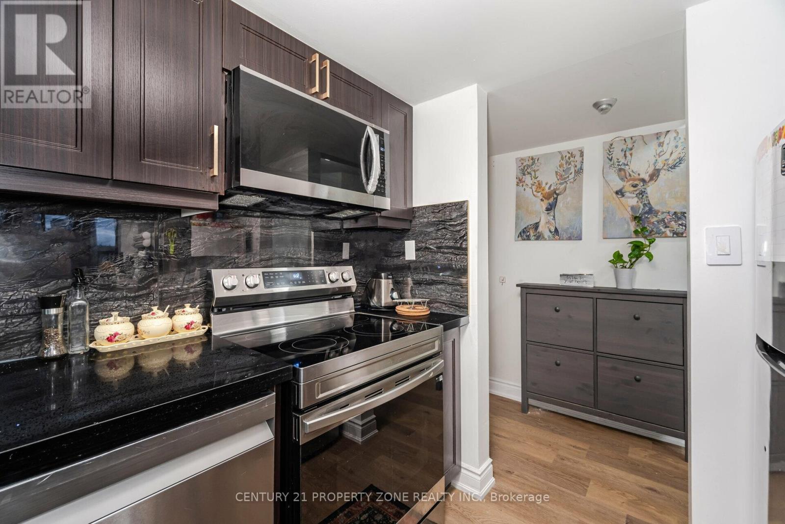 Welcome To This Stunning 2+1 Bedroom Condo And Enjoy Breathtaking View Of Downtown Mississauga. Unit Newly Renovated in OCT 2024. This Unit Features BRAND NEW Floors Throughout, Giving It A Sleek Look. This Spacious And Bright Unit Boast Modern Finishes And An Open Concept Layout That Is Freshly Painted With Lots Of Natural Light. The Primary Bedroom Has a 4 Piece Bathroom. It Also Comes With Ensuite Laundry, One Parking Spot And One Locker, Providing Ample Storage Space. This Unit Is Conveniently Located Near Qew & The 403, Go Trains, Express Bus Service To Downtown Toronto. Great Opportunity For Commuters. Nearby To Square One Shopping Mall, Excellent Assigned Schools, Parks, Trillium Hospital And Restaurants. Enjoy Convenience & Lifestyle. (id:4555)