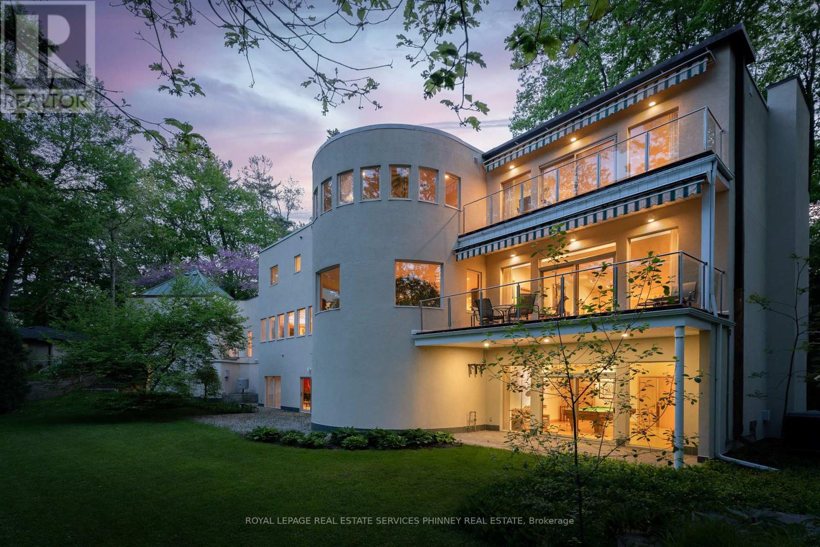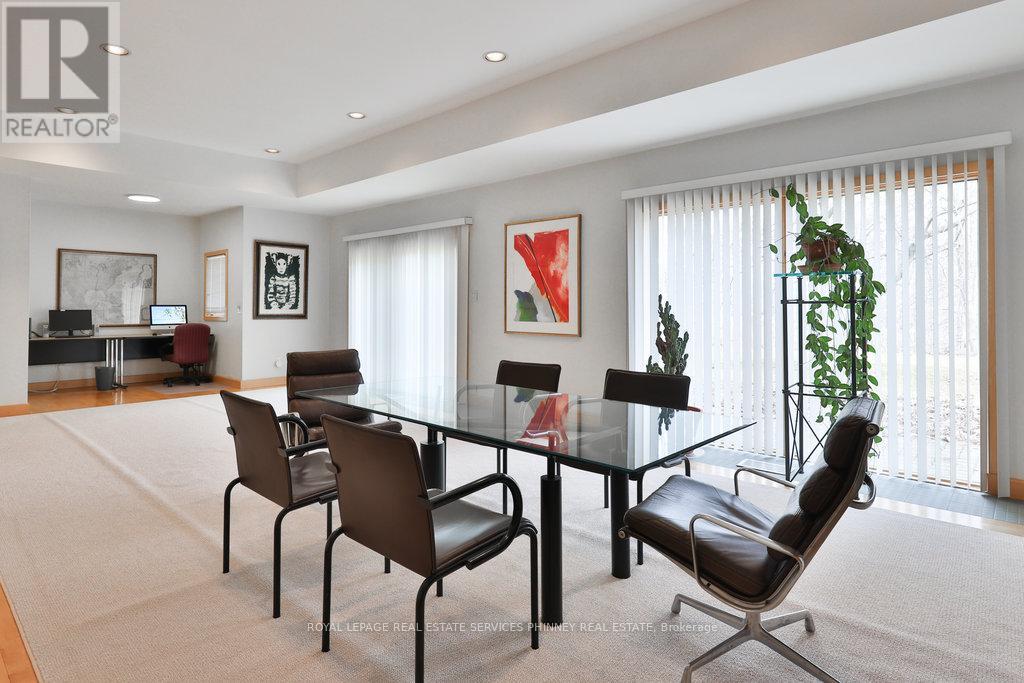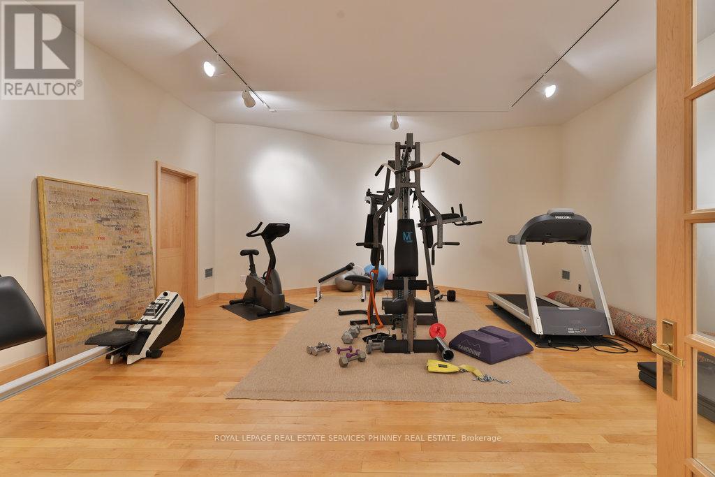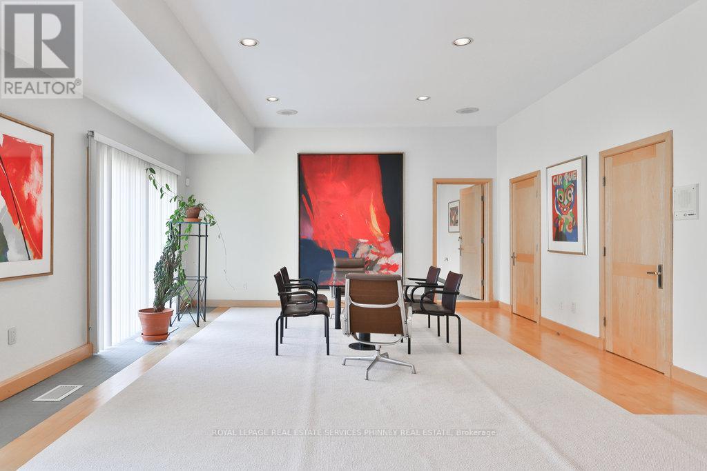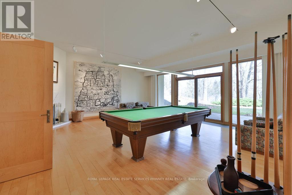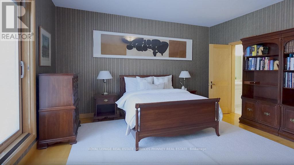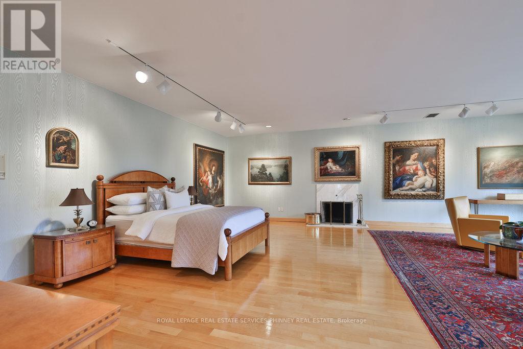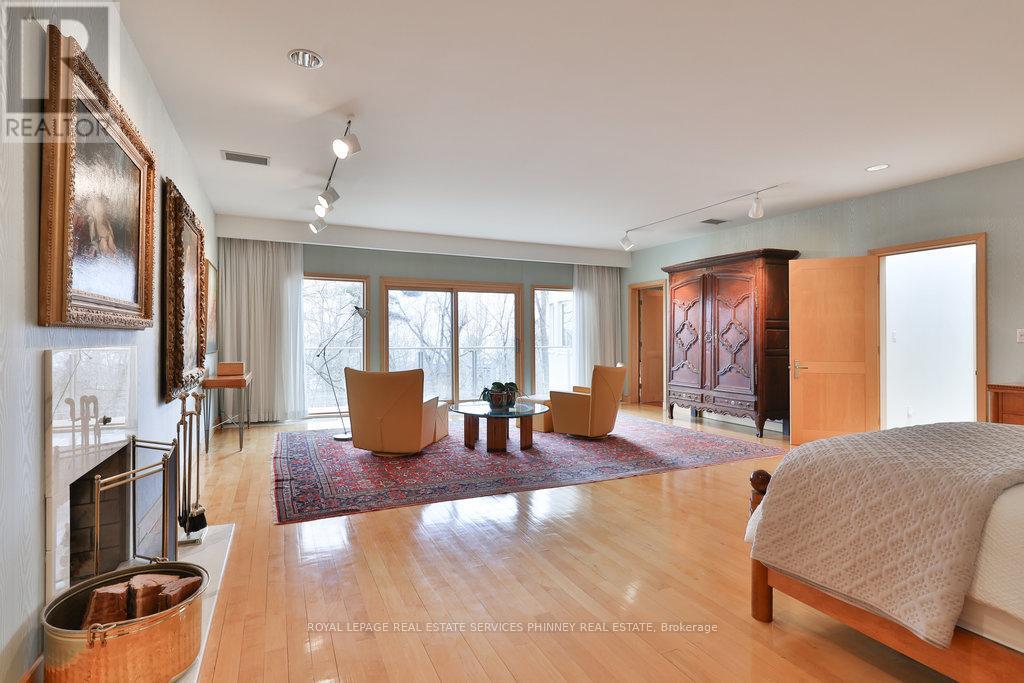 Bauhaus Masterpiece in Lorne Park Estates. This architectural gem, designed by Joseph A. Medwecki, sits on a private ravine lot with stunning lake views and nearly 12,000sqft of living space. Offering unparalleled privacy and natural light, this 7-bedroom home spans three levels, ideal for multi-generational living or staff accommodation. Features include 10-ft ceilings, maple hardwood floors, pot lights, and multiple marble-surrounded fireplaces, blending sophistication and comfort throughout. The main floor is designed for entertaining, offering a library, a grand formal living room that flows seamlessly through double doors to the expansive formal dining room- an elegant setting for hosting guests. The chef-inspired kitchen boasts high-end appliances& blue quartz countertops. For added convenience, a main floor bdrm w an ensuite creates an ideal space for a nanny or guests. The upper level reveals a luxurious primary retreat complete w a spa-like 5pc ensuite and a private balcony offering mesmerizing lake views. A 1,529-square-foot rooftop terrace your personal oasis with panoramic views of the lake, an idyllic place to relax and unwind. The lower level is a haven of relaxation and entertainment, ft five walk-outs to the rear gardens, flooding the space with natural light. It includes a private spa room with a hot tub and sauna, a secondary primary suite with a 4-piece ensuite, a gym, games room, and a 1,200-bottle wine cellar. A 3-bay garage accommodates 5 cars, with space for 10 more in the driveway and additional parking near the street. This home is not just a residence it's a statement, a one-of-a-kind masterpiece that beckons those with the most refined tastes. Experience the extraordinary and make it yours today! (id:4555)