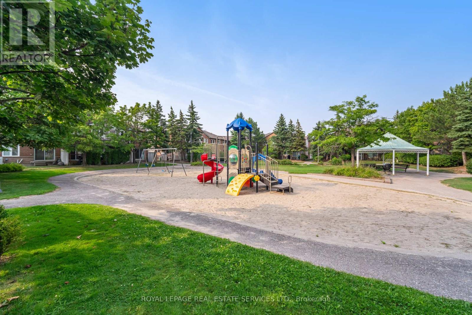 Welcome to this beautifully upgraded end-unit condo townhouse, ideally tucked away on a quiet court in the heart of Mississauga. Boasting over 2,000 square feet of thoughtfully designed living space, this impeccably maintained home features elegant hardwood flooring throughout both the main and upper levels.The open-concept main floor offers a seamless flow, perfect for everyday living and entertaining. Enjoy a spacious dining area, a chic 2-piece powder room, and a kitchen equipped with built-in appliances. The inviting living room is warmed by a cozy fireplace and overlooks a sun-drenched backyard facing a children's playground - a serene setting for families. Upstairs, the expansive primary suite offers his and hers custom closets and a luxurious 4-piece ensuite. Three additional generously sized bedrooms and a beautifully updated 4-piece bathroom complete the upper level. Custom closets throughout by Grinyer add both style and smart storage, while WiFi-controlled LED pot lights elevate the ambiance throughout the home.The finished basement has been recently renovated to include a modern bathroom, a functional laundry area, and plenty of storage space. Situated minutes from Square One, top-rated schools, major highways, parks, and dining- this home truly checks athe boxes. A must-see gem in a prime location! (id:4555)