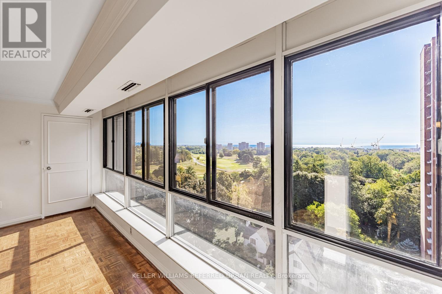 One of the most coveted, renovated suites at The Fairways voted Condo of the Year in 2021! Ideally located on the Toronto border, this residence offers unobstructed CN Tower and lake views. A golfers paradise adjacent to the Toronto Golf Club and on the grounds of Lake View Golf Course.This large suite includes side-by-side parking for two vehicles right beside the elevator, complete with an EV charging station and private locker. Inside, the gourmet kitchen showcases 4-inch quartz countertops, soft-close cabinetry, and premium stainless-steel appliances. The suite spans an impressive 1,950 sq. ft. of refined living space, featuring three renovated spa-inspired bathrooms and three spacious bedrooms, all overlooking two golf courses for unmatched privacy and serene views.A standout opportunity is the ability to add an additional powder room in the front storage room an exceptional value-add that enhances both functionality and resale appeal. Enjoy remarkably low condo fees for a suite of this scale, with all utilities, internet, and cable TV included.Residents indulge in a true resort-style lifestyle, complete with an outdoor pool, tennis courts, fully equipped gym, library, woodworking studio, card room, and the exclusive McMaster House the perfect venue to host your gatherings in style. (id:4555)