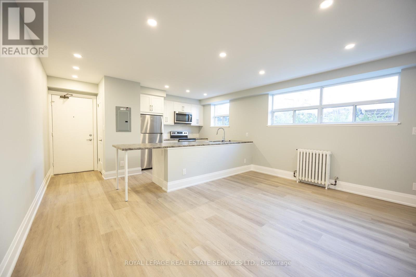 Welcome home to this bright and spotlessly clean Two Bedroom lower level apartment in a Port Credit boutique building. Unit has been renovated top-to-bottom and shows like a brand new condo. Relax in warm surroundings featuring modern appliances and a spacious, functional kitchen with breakfast area on peninsula, above-range microwave and a built-in dishwasher. Stunning renovation features vinyl floors throughout, all new cabinets &appliances, all new interior doors, trim & baseboards. Clean and well managed building with security cameras &laundry on site. Walk to grocery store, transit, new LCBO, Lake Ontario and the new Brightwater development. Rent includes heat & hydro. Port Credit is the place to be! Trendy & Vibrant restaurants, upscale shopping, frequent festivals and events throughout the year. (id:4555)
