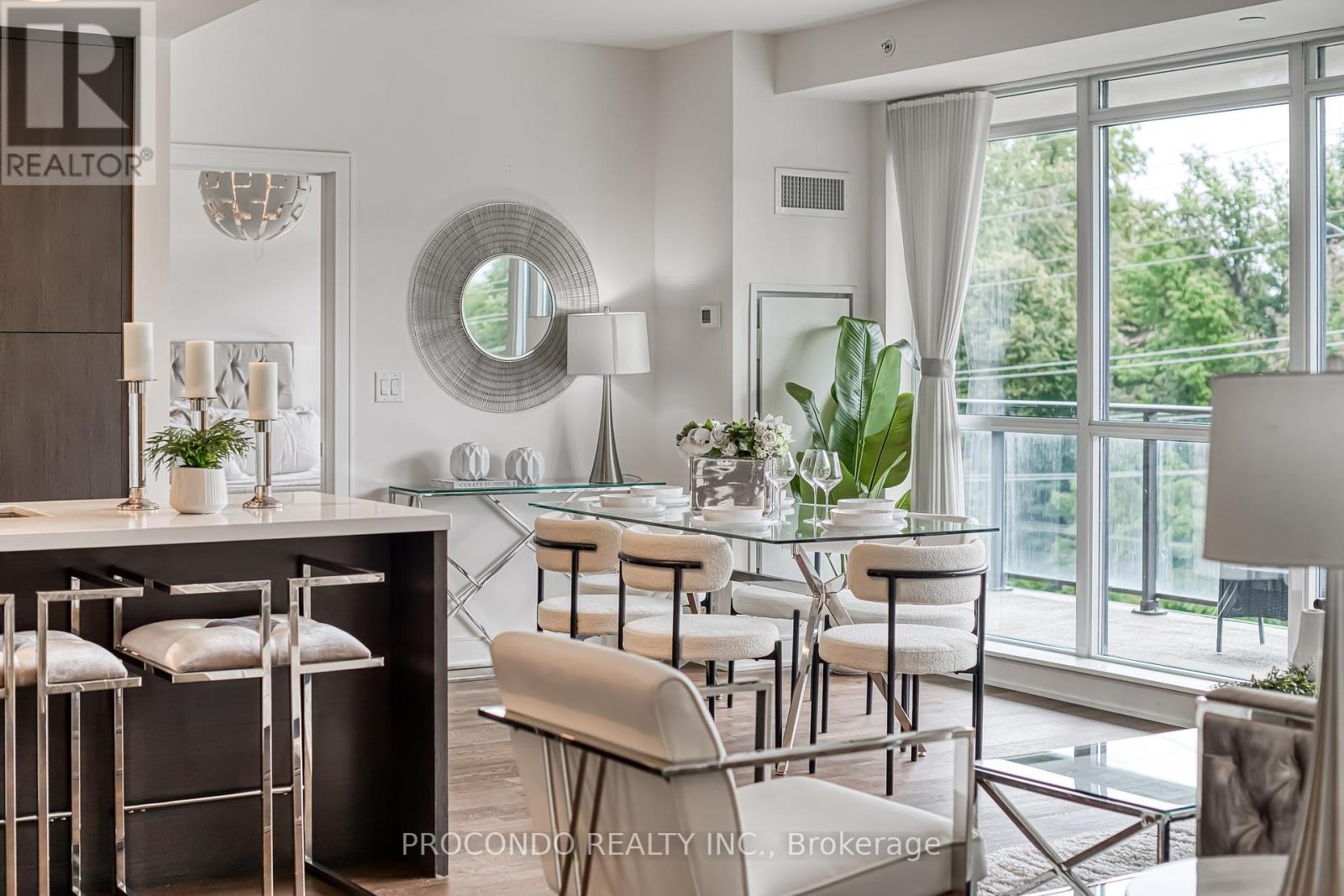 One of the biggest floorplan in the building in the Craftsman with its exclusivity & high-end finishes. Luxurious Upgrades, 9 Ft Ceilings Throughout, Engineered Hardwood Floors, Quartz Counters In Kitchen & Washrooms, Oversized Windows And More. Enjoy The Stunning Southern Views And Fall In Love With Its 235 Sqft Balcony. Practical living room layout with space for a large sectional sofa & more. The nearly 1,300 sq ft interior gives you the space of feeling like living in a townhouse but enjoying the convenience of living in a condo at the same time. The split-bedroom layout ensures privacy, with a spacious second bedroom and full bath on one side, and a primary retreat on the other. The den provides extra utility space, large enough for a 3rd bedroom or office. This suite is 10 steps away from the elevator, providing quick & convenient exits & entries. Plus additional storage is located steps from the front door as the locker is just down the hallway & the 2 side-by-side premium parking spots. Close Proximity To Lake Ontario, Public Transit And Go. Stunning Amenities! (id:4555)