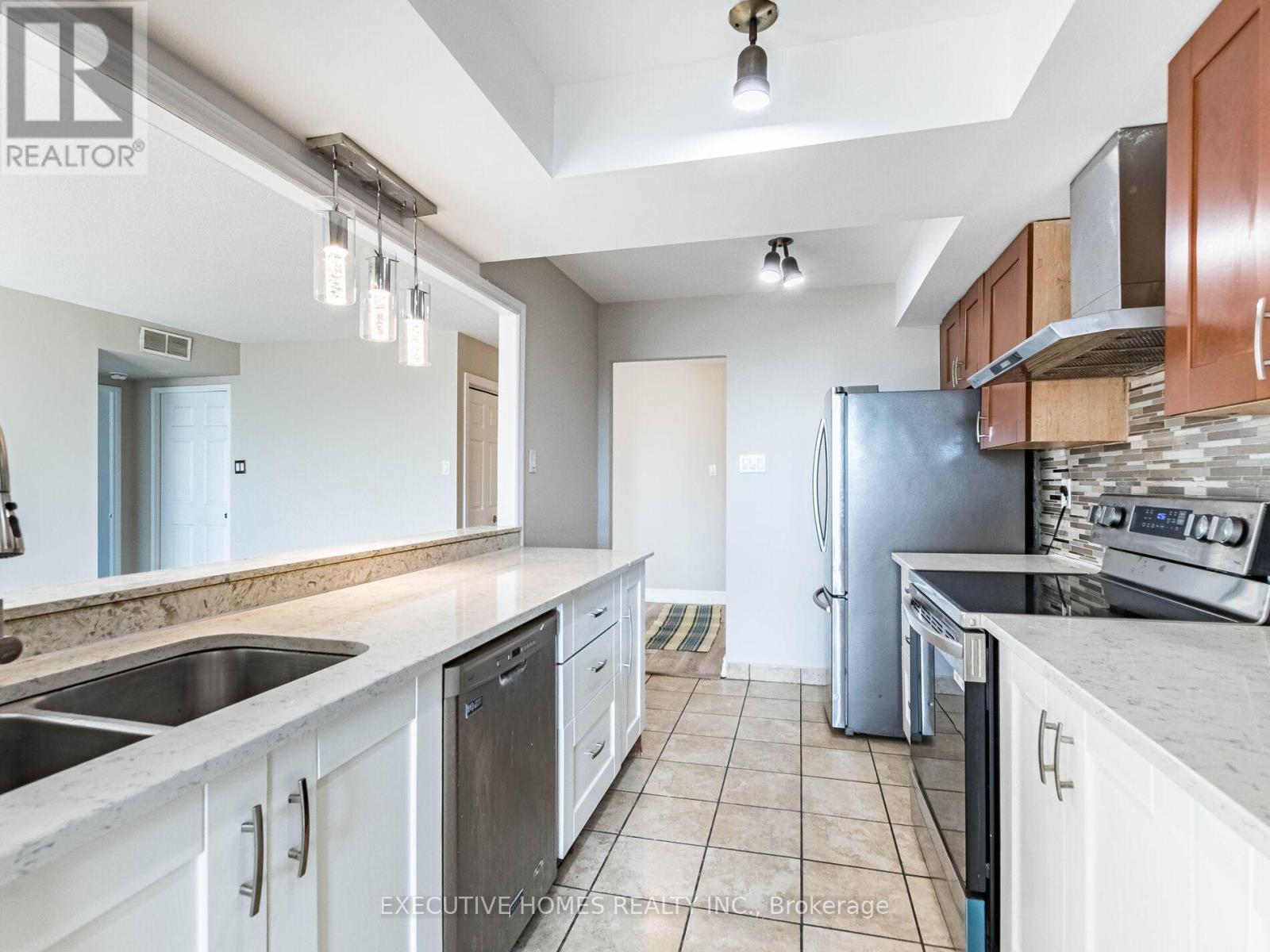 Welcome to this bright and spacious 2-bedroom plus den, 2-bathroom condo offering 1,217 sq ft of well-designed living space that feels as generous as a house. The versatile den can easily function as a third bedroom, home office, or study. With a smart layout and abundant natural light, the unit features a large living room, a separate dining area, and brand-new high-end laminate flooring. Freshly painted with designer-selected colors, the condo includes stainless steel appliances and an almost-new oven still under warranty. Ideally located within walking distance to the future LRT and just minutes from Square One, major highways (401/403/QEW), GO Station, restaurants, schools, community centers, and parks, this home offers both comfort and convenience. The building boasts exceptional amenities such as 24-hour concierge, squash and tennis courts, indoor swimming pool, sauna, BBQ area, party hall, gym, recreational room, covered parking, and a dedicated locker both included with the unit. Don't miss this opportunity to make this beautiful condo your new home! (id:4555)