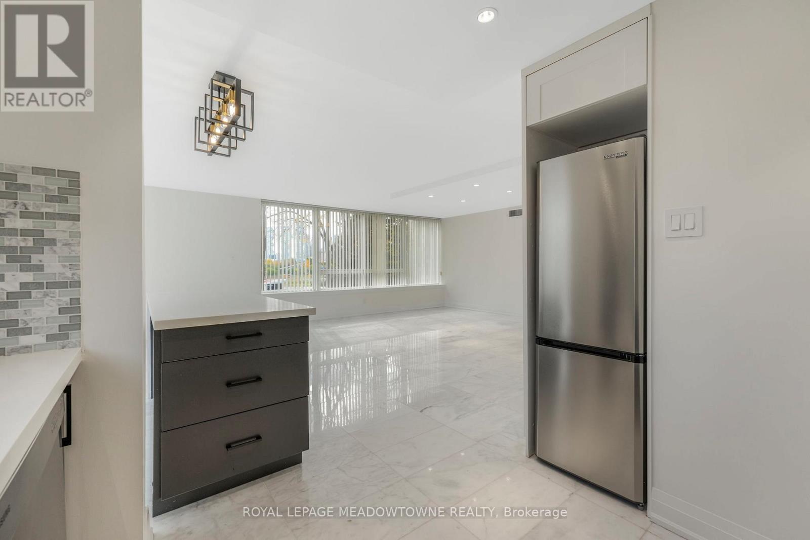 Welcome Home! Your Beautifully Upgraded Condo in the Heart of Mississauga Awaits! Come see this bright and inviting 2-Bedroom, 2-Bathroom CORNER UNIT condo that truly feels like home. Located in the absolute heart of Mississauga, this unit offers convenience, luxury upgrades, and a wonderfully quiet atmosphere-perfect whether you're starting out or looking to downsize. Close to major Highways, fantastic Shopping, schools, recreation, and places of worship. Plus, with this convenient second-floor unit, you don't even need the elevator to get in and out! It comes complete with 1 dedicated parking spot. This sun-drenched condo faces south and southeast, ensuring your main living areas are bright all day long and offer a lovely private view. You'll love the quality touches throughout. Gorgeous Marble Floors flow throughout the main living areas and bathrooms, giving the space an elegant, cohesive feel. The grand entranceway features a beautiful stone accent wall and a handy closet. Cozy up in the living room next to the fireplace! It's beautifully integrated with a built-in bookshelf and entertainment unit. Smooth Ceilings and a separate, modern Carrier heating system offer year-round comfort. Kitchen: Fully functional with a stylish backsplash, upgraded sink and faucet, and a full-size dishwasher. The clever moveable island with three drawers gives you flexibility and extra prep space! Primary Bedroom with hardwood floors, two closets (including a walk-in), and an indulgent Ensuite bathroom. Features a shower/tub combination, Corian counters, marble accents, an upgraded toilet, and a chic floating vanity. Second Bath: Features an upgraded glass shower stall with enhanced pressure control and two dedicated linen closets for excellent storage. With hardwood floors in the second bedroom (which also has great closet space). Insuite laundry for ultimate convenience. Unit is virtually staged. (id:4555)