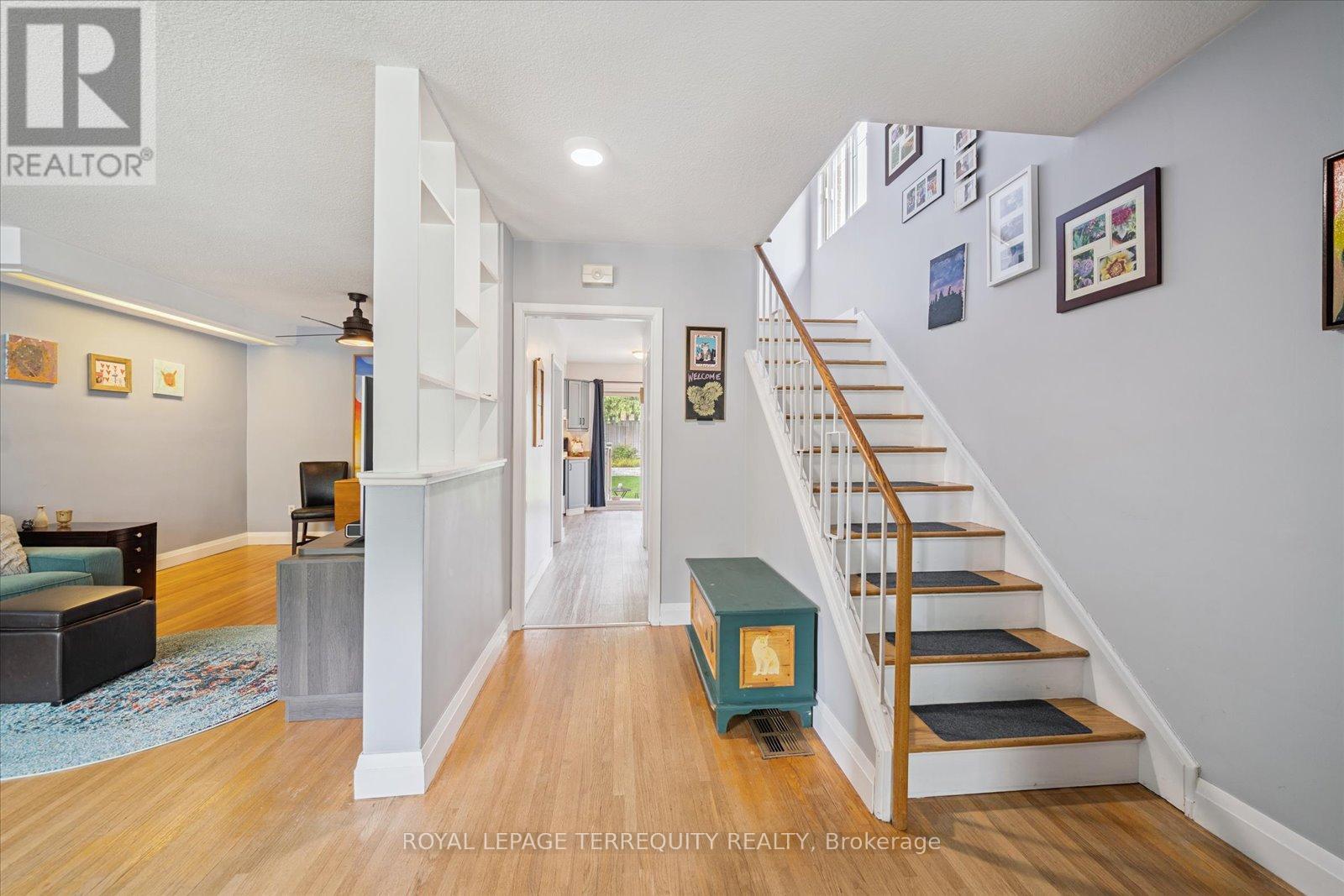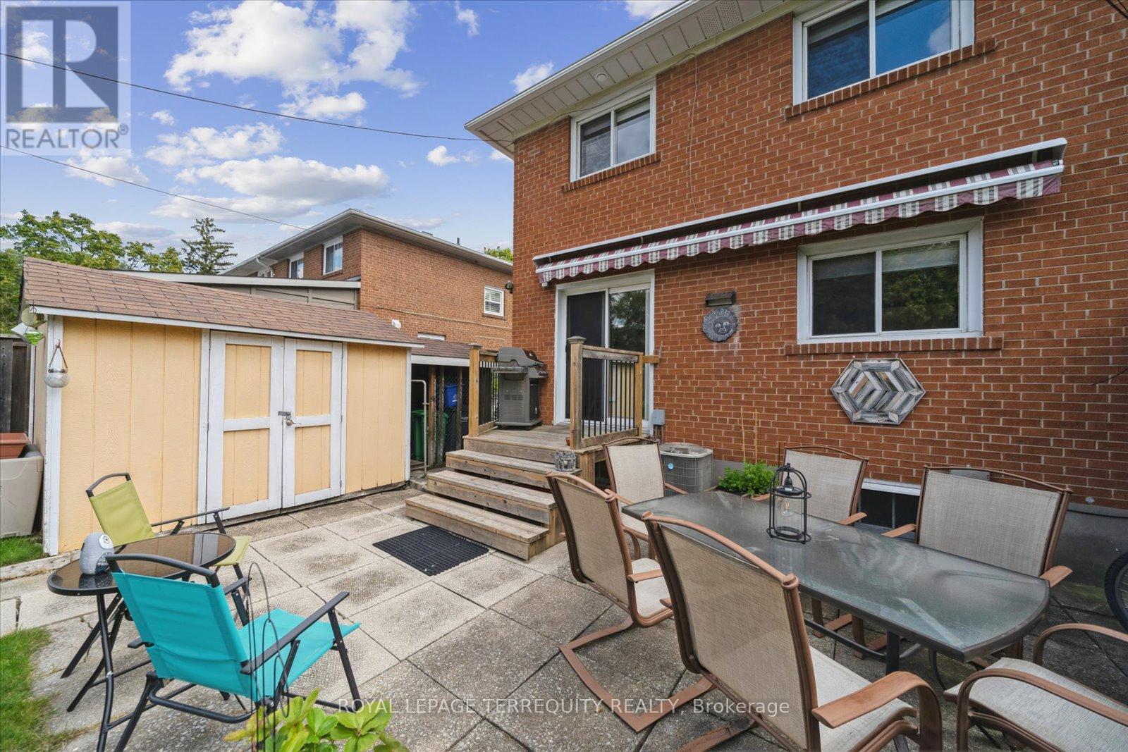Welcome to Applewood Heights, one of Shipps finest. This solid built, rare original 4 bedroom semi, is carpet free with real hardwood floors throughout. We are the second owner of this well cared for and loved home. With a fully finished basement and separate side entrance, this family home has potential for apartment with income, or in-law suite. Totally surrounded by mature trees and tailored landscaping, enjoy our wonderful huge backyard with custom gardens. We are fully fenced and private, with a new retaining wall, newer shed and added dog run/house (more storage if you do not have a pet). We also have a natural gas BBQ hookup, and an electric awning on the back deck; perfect for the super hot sun filled days when you need an extra bit of shade .Great for entertaining or for your own personal use; truly an oasis in the city. Our floor space is open and bright with natural light, an amazing layout. Rooms are large and all bedrooms have their own closets. Great storage space throughout . We are freshly painted, modernized and upgraded throughout. More specifically, new furnace and A/C (2021), new washing machine (2025), new roof and vents (summer 2025), newer eavestrough and leaf guard (2018), newer front and side entrance doors, and custom window coverings. Check out our upstairs bathroom with a skylight too! We have copper wiring, no asbestos in the attic insulation, new light switches/dimmers, above grade basement windows and a modern home entertainment system in the basement rec room. There is currently no basement bathroom, but the city has approved an installation of one and the permit is transferrable. Move in as we are, or you can still custom the space to your lifestyle. Welcome Home! (id:4555)