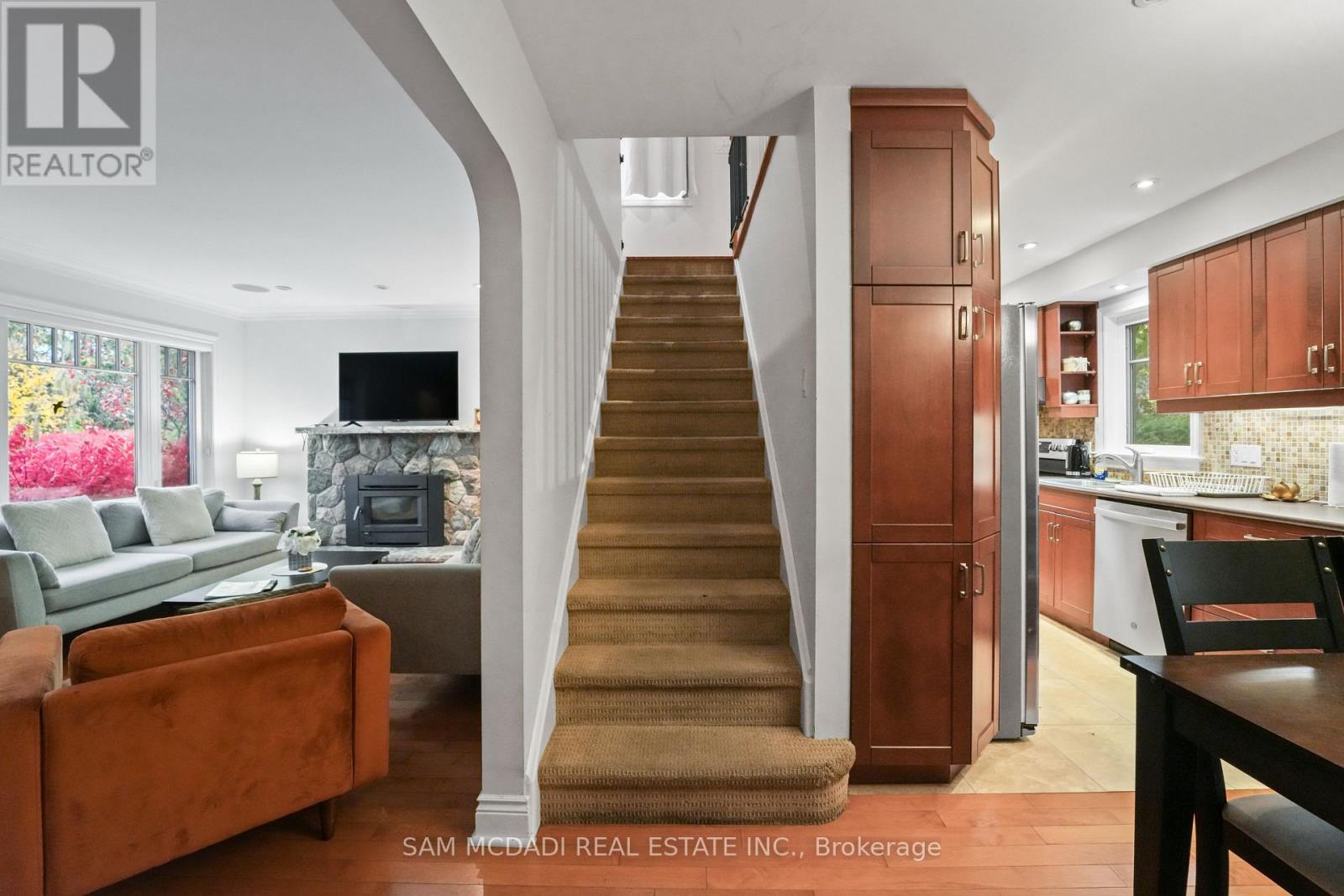 Beautifully updated detached home in the heart of Port Credit. This spacious 3+1 bedroom, 3-bath home features an open-concept main floor with hardwood floors, large windows, and a cozy fireplace. The modern kitchen offers stainless steel appliances, pot lights, and a walkout to a deck overlooking a fenced backyard. The primary bedroom includes a 4-piece ensuite and walk-in closet. Finished lower level with separate entrance, recreation room with gas fireplace, and additional bedroom. Detached 2-car garage with private driveway and parking for up to 8 cars. Close to schools, parks, transit, and Lake Ontario. (id:4555)