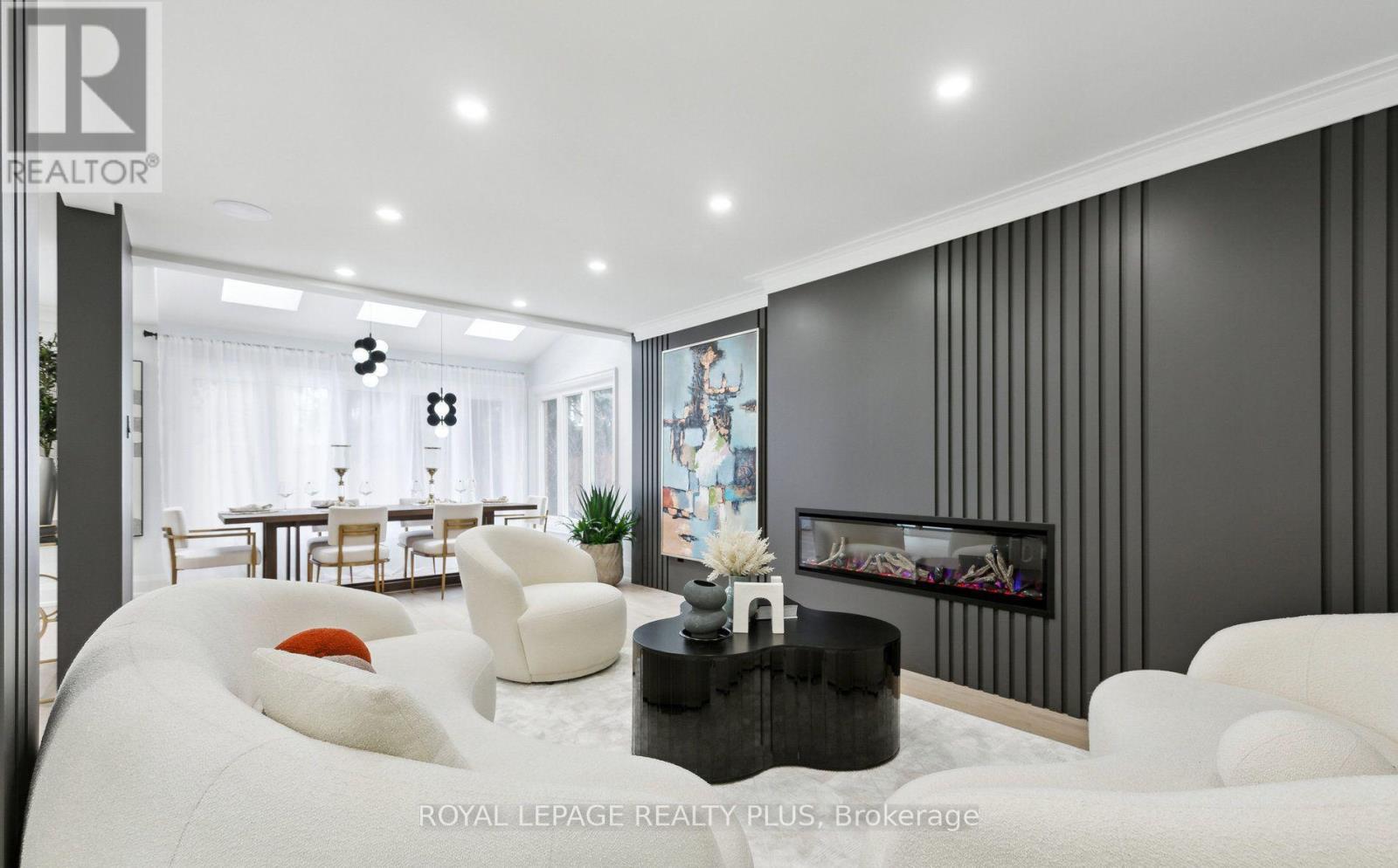 Nestled in a prestigious cul-de-sac, this stunning home boasts a grand entrance, 9.5-inch natural oak floors, an open-concept design, and a chefs dream kitchen with an oversized island. Skylights and floor-to-ceiling windows flood the space with natural light, while a cozy fireplace, custom feature wall, and built-in speakers create a warm and inviting family room with walkout access to a fully fenced backyard featuring mature trees and a patio. The spacious primary suite offers a bay window, open walk-in closet, and a luxurious en-suite with heated floors. All bedrooms are generously sized with custom-built closets. The fully finished lower level includes a wine cellar, an additional bedroom with a walk-in closet or office space, a three-piece en-suite, and potential for a second kitchen or bar. Completing this home is a double car garage, an extended four-car driveway with no sidewalk, and professional landscaping all combining elegance, comfort, and practicality in one remarkable property. (id:4555)
