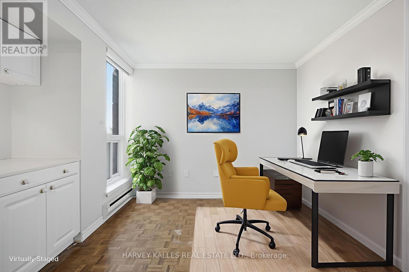 Welcome to the heart of Clarkson Village. This spacious 1,350 sq ft condo with a large balcony offers a bright and private 5th floor view overlooking landscaped gardens and mature trees. This floorplan features two generous bedrooms, a large den, an updated 3-piece ensuite bathroom and a second updated 4-piece bathroom. Plenty of ensuite storage, including a large walk-in storage area and convenient ensuite laundry. The standout balcony spans approximately 16'11" x 7'11", perfect for outdoor relaxing or entertaining. Parking is a large tandem spot located close to the elevator. This well-managed building offers excellent amenities including an outdoor heated pool, sauna, gym, party room with full kitchen, bike storage, car wash with two bays, and ample visitor parking. The lobby, entrance doors and hallways have been recently renovated, adding to the fresh and welcoming feel. Just steps to Clarkson GO, shopping, dining, parks, Ontario Racquet club , Lake Ontario, Rattray Marsh trails, and quick access to QEW and 403. A wonderful opportunity to own in a highly desirable and convenient location. *Some photos are virtually staged. (id:4555)