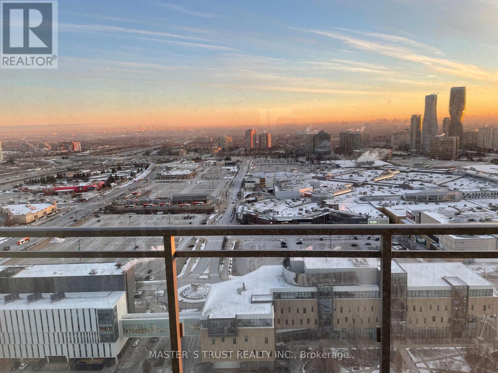 Located at the heart of Square One, corner unit, 1 Bdr + 1 Den + 2 washrm, suite size 716 sqf, 9-feet ceiling, large wrap around balcony, balcony size 286 Sqf, large den can be used as 2nd bedroom, unobstructed and breathtaking view, movie theatre, Gym , BBQ, area garden plots, guest units, 24-hr concierge. One parking included, simple furniture. (id:4555)