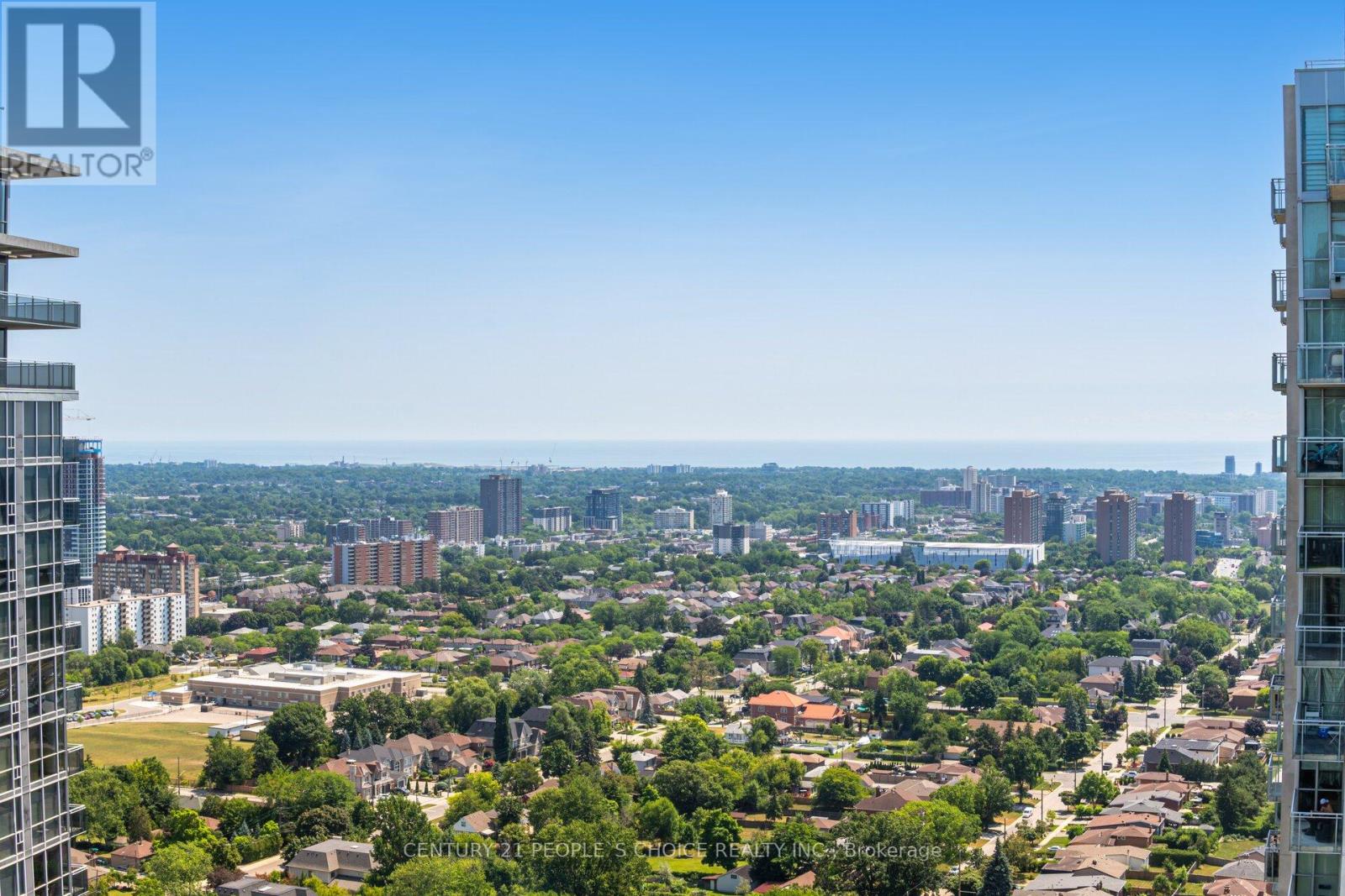 On The 33rd Floor In The Heart Of Mississauga City Centre, This Suite W/10 Ft Ceilings is Full Of Quality Penthouse Upgrades & Panoramic Views. Fireplace, Counter Tops, Hardwood Floors And S/S Appliances. Walking Distance To Square One. Bright & spacious sun-filled corner unit w/stunning views with one parking spot & One locker. Prestigious 3939 Duke of York Blvd one of the most sough-after buildings in City Centre. Gorgeous unit situated on the 33rd floor, this suite offers breathtaking southwest views and an abundance of natural light through its floor-to-ceiling windows. Featuring 1 bedroom plus a versatile den, two bathrooms, & an impressive 635 sq ft of well-designed living space! This unit boasts 10-ft ceilings, modern light-toned hardwood flooring throughout, stylish upgraded light fixtures, open-concept living & dining area with a walk-out to the private balcony. All plumbing has been done for the unit, as per building code. Stunning kitchen w/upgraded countertops, backsplash, S/S appliances, & a spacious eat-in area where you can enjoy meals with a view. Generously sized primary bedroom featuring a private ensuite bathroom, big closet, & large windows. Rarely does a maintenance fee include utilities-in this building heat/hydro and water are included offering exceptional value and convenience. This is an opportunity to live in a desirable building in the heart of City Centre where exceptional amenities await including a fabulous indoor pool, whirlpool, party room, media room, sundeck, gym, BBQ area, beautifully landscaped courtyard, security guard, and visitor parking. Exceptional location within walking distance to Celebration Square, Square One, restaurants, transit, Ymca, Sheridan College, the Living Arts Centre, public library, movie theatres, shops, medical offices, banks, and more. Great location for commuters with easy access to Highway 403/401/410 making this an ideal spot to call home! (id:4555)