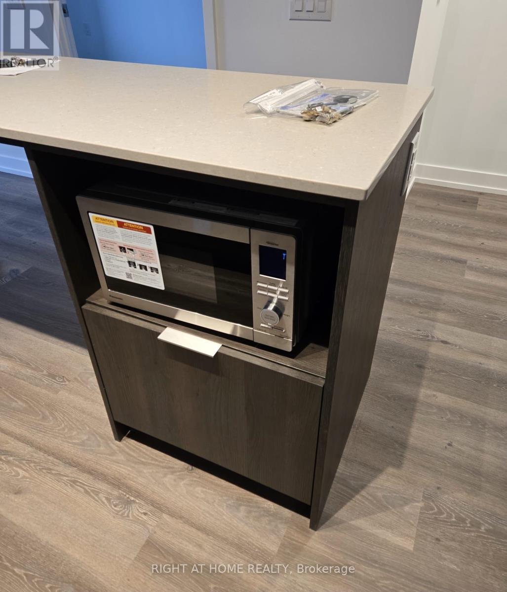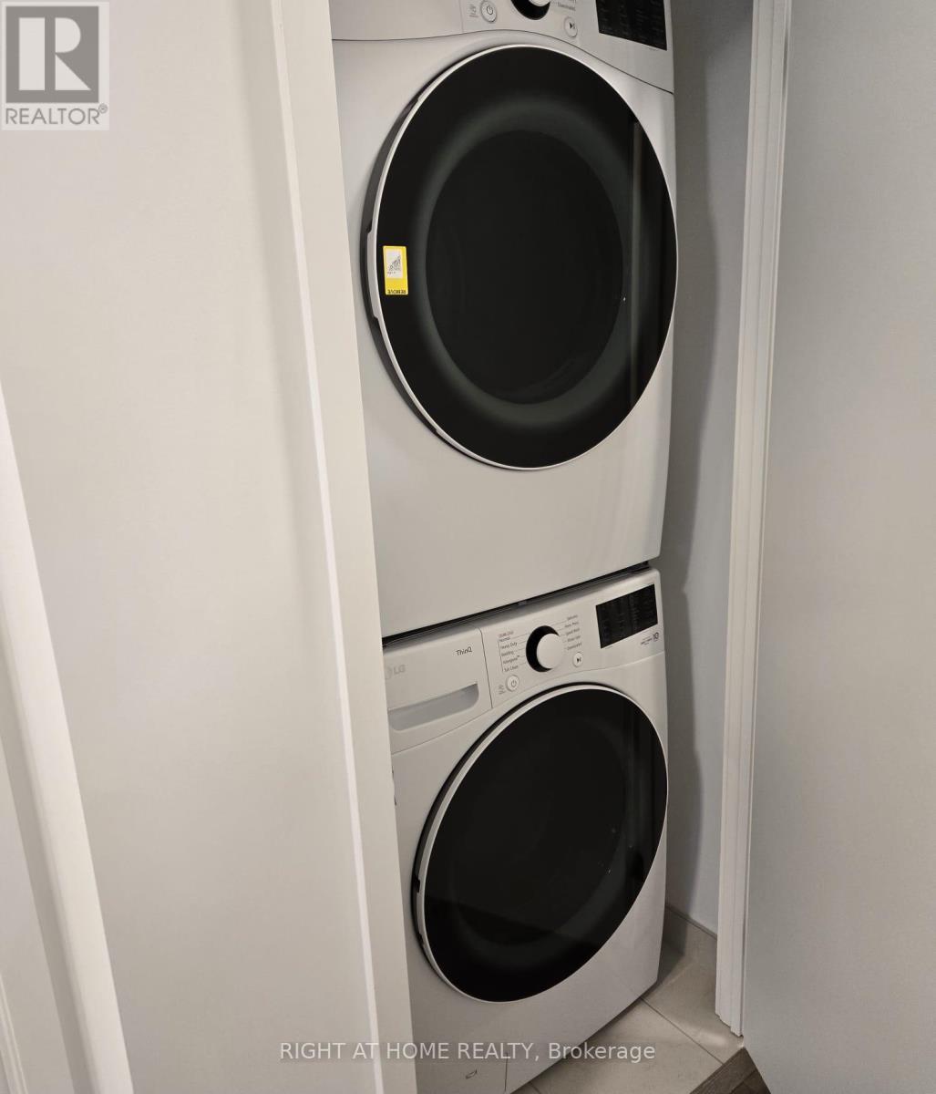 Never-lived-in 2-bedroom, 1-bath Daniels condo in the heart of Square One. Open-concept layout with laminate flooring throughout and floor-to-ceiling windows. Highly desirable split-bedroom design for added privacy. Modern kitchen featuring cooktop, built-in oven, panelled dishwasher, bottom-freezer fridge, and centre island. Primary bedroom with closet. Convenient access to a 4-pc upgraded bath including soaker tub and rainfall shower. Full-size front-loading washer and dryer. Enjoy exceptional amenities: gym, basketball court, rock climbing wall, kids' play area, sauna, outdoor terrace with BBQs, and 24-hr security. Large balcony with panoramic city views. Prime location steps to Square One, Living Arts Centre, YMCA, Sheridan College, transit, and City Hall. Easy access to Hwy 403/401/QEW. Includes 1 parking and 1 locker. (id:4555)