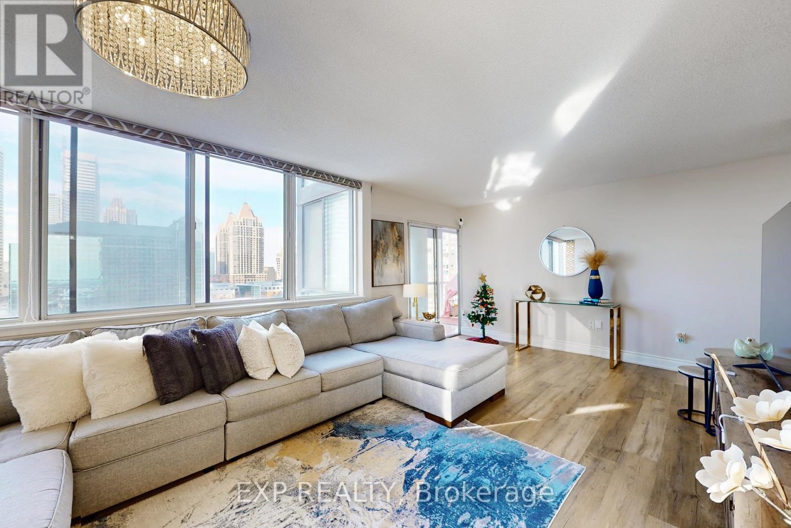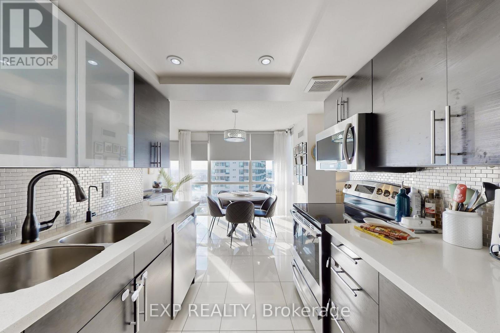 Wake up in a sun-filled corner sanctuary offering 1,380 sq ft of thoughtfully designed living space, where natural light pours in throughout the day with breath taking view .This rare 2-bedroom plus den, 2-bath corner residence with 2 parking spaces is more than a home-it's a lifestyle upgrade, blending exceptional rarity with an unbeatable location.The spacious layout showcases a premium kitchen with High end stainless steel appliances, sleek countertops, seamlessly flowing into expansive living and dining areas with private, unobstructed breath taking views. Enjoy the convenience of ensuite laundry, generous storage, and a spacious primary suite designed as your personal retreat.The Platinum's resort-style amenities elevate everyday living, featuring a fitness centre, heated pool, whirlpool, sauna, party rooms, landscaped gardens, concierge service, and ample visitor parking. Comprehensive maintenance fees include water, heating, building insurance, and parking-offering peace of mind and outstanding value.Step outside to everything Mississauga has to offer: Celebration Square, Square One Shopping Centre, Sheridan College, acclaimed dining, parks, and seamless transit connections are all moments away.Opportunities to own a 2-bedroom plus den corner unit of this calibre are rare. With superior natural light, premium positioning, and generous proportions, this residence won't last long. Whether you're growing your family, working from home, or investing in prime Mississauga real estate, The Platinum is where lifestyle and location converge.Schedule your private showing today-exceptional homes are claimed quickly. (id:4555)