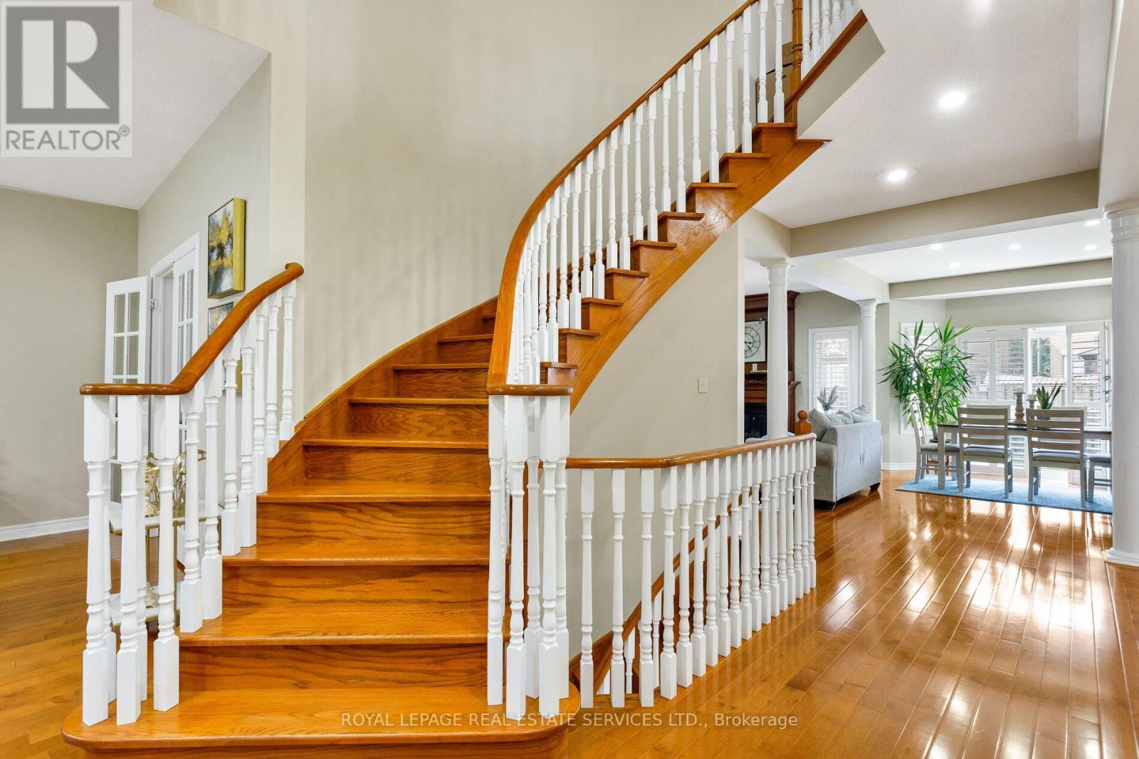 This impressive & stately 5+2 bedroom, 6.5-bathroom luxury home with 2 full kitchens is situated on a premium lot in the highly sought-after Churchill Meadows community of Mississauga. Ideally located within walking distance to parks & schools, and close to the Credit Valley Hospital, shopping, restaurants, & major highways. This spacious home with over 5000 sq. ft. of living space offers the perfect blend of elegance, comfort, & convenience. The fully-fenced backyard features custom-built decks & a charming arbour ideal for summer relaxation. Inside, refined details elevate the homes design, including 9-foot main floor ceilings, pot lights, California shutters, hardwood flooring, decorative columns, & a curved oak staircase leading to a professionally finished basement. A second staircase from the garage to the lower level adds practicality & privacy. The main floor boasts a formal living & a separate dining room, a private office, & the family room features a gas fireplace with a custom mantel. The bright kitchen offers extensive wood cabinetry, granite countertops, under-cabinet lighting, stainless steel appliances, a peninsula/island with breakfast bar, & a large breakfast room with walkout to the custom decks. Upstairs, all 5 bedrooms feature ensuite access, offering comfort & privacy for the whole family. The luxurious primary suite showcases a wall of windows with California shutters, hardwood floors, a serene sitting area, a custom walk-in closet, & a spa-inspired 5-piece ensuite with a corner soaker tub & separate shower. The fully finished basement, accessible via the primary or secondary staircase, is ideal for an extended family situation, offering a large recreation area, a second kitchen, 2 additional bedrooms, & 2 full bathrooms. This beautiful residence is a rare opportunity to live in a spacious, elegant property in one of Mississauga's most prestigious neighbourhoods. No pets, no smokers, credit check & references required. (id:4555)