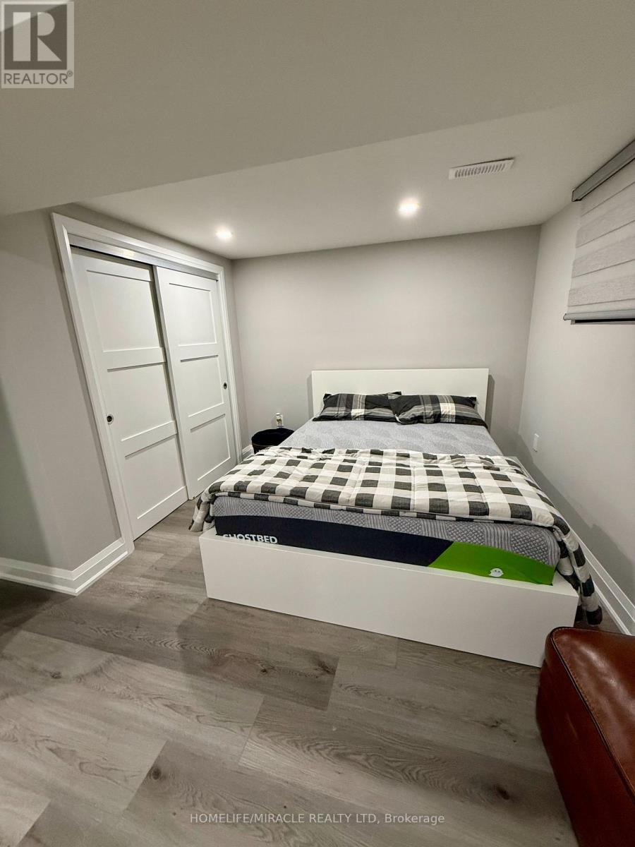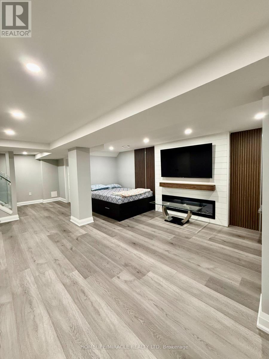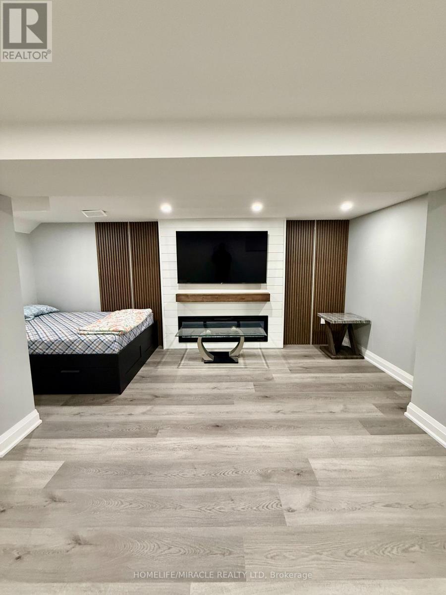 Fully furnished 1 bedroom lower level suite at 7044 Chigwel Court, Mississauga. Features a private separate entrance with glass railing, spacious family room with fireplace insert, Accent wall with a matching lintel below TV, pot lights, and premium flooring. Bedroom offers double-door entry and large closet. Designer washroom with glass shower and modern finishes. Kitchen includes glass cooktop and custom backsplash. Separate laundry. Internet included. Tenant pays 30% utilities. 1 parking space included. Located on a quiet court in a desirable neighborhood. (id:4555)