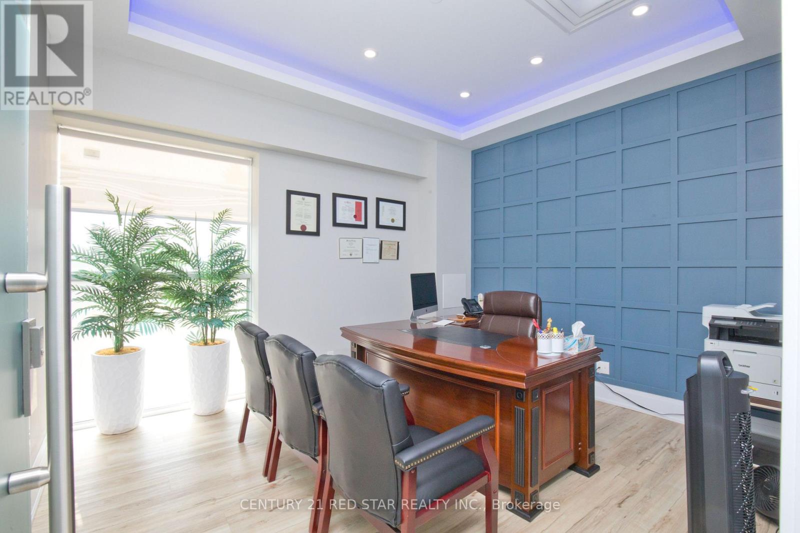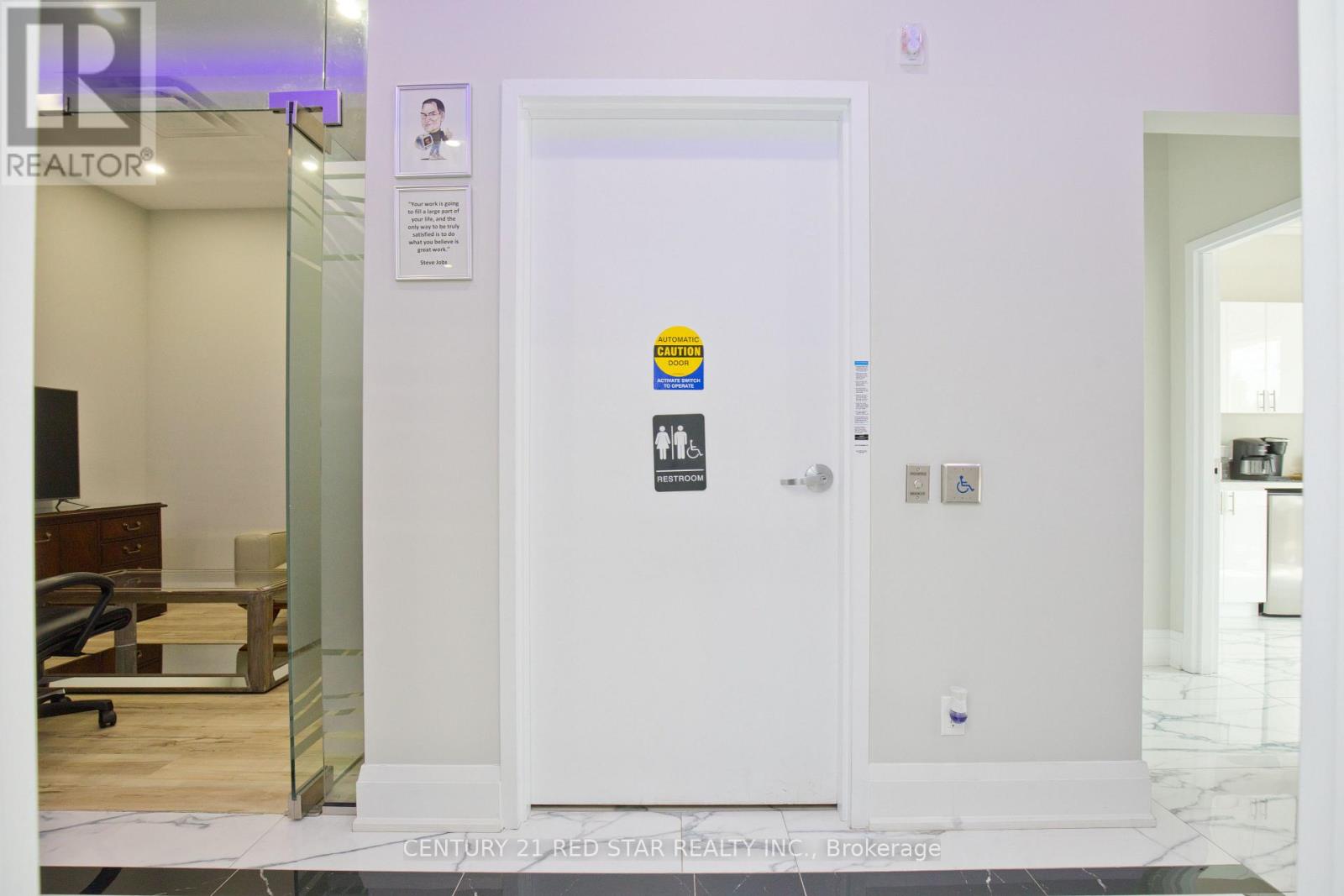 We are pleased to offer an exceptional office space for sale in one of Mississauga's most sought-after locations, conveniently situated near major highways and essential amenities. This beautifully designed office premises provides a modern and functional workspace ideal for businesses seeking both style and practicality. The interior features elegant, contemporary furnishings providing ample space for organization. Each office is equipped with locks, ensuring secure access, adding to its appeal, the main floor boasts a kitchen, offering convenience for staff and visitors. The boardroom and private offices are outfitted with thoughtfully crafted decor, creating an inviting yet professional environment. This office space is perfectly suited for businesses looking to elevate their workplace experience with high-quality features and a prime location. Well constructed 12 office with Kitchen and 2 washroom on main floor and 1 office and washroom on mezzanine floor. Nice reception with open ceiling and all office with glass doors and hard wood floors, hallway with ceramic tile. (id:4555)