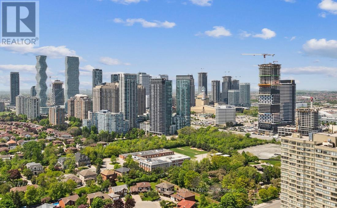 Lowest Price in the Building, Location, Location and Location, Less than One Year Old, NW Exposure Corner Suite. Bright & Spacious 2 Bedroom, 2 Washroom with 1 Parking and 1 Locker in Mississauga's newest luxury condominium(Edge Tower-2). Strategically located in the heart of the vibrant downtown corridor, Just steps from the future Hurontario LRT. This elegant, carpet-free home of 721 Sq Ft boasts a bright open-concept living area, a modern kitchen with fully integrated refrigerator and dishwasher, European style designer hood fan, quartz countertop, backsplash, center island, 9' high ceilings, and floor-to-ceiling windows/doors. Private balcony of 32 sq ft with stunning city views. Primary bedroom with large walk-in closet, Ensuite bathroom, and full-size stackable washer and dryer. Premium laminate floors, ceramic floors in bathrooms and laundry. Upscale hotel-style lobby offers a suite of amenities, including 24-hour concierge service, 2 luxury guest suites, Wi-Fi lounge, state-of-the-art movie theater, engaging billiards/game room, vibrant party rooms, state-of-the-art gym and yoga studio, and a rooftop terrace adorned with fireplaces and BBQ areas. Walk to Square One, the main transit terminal, GO buses, Living Arts, Sheridan College, Celebration Square, the Central Library, YMCA, Cineplex, banks, restaurants, and shops. This excellent location in Mississauga's downtown is also close to Cooksville GO, 403/401/QEW, Port Credit, and many other attractions. Do not pass up this lifetime opportunity. Maintenance fee cover bell high speed internet, maintenance of parking and locker. (id:4555)