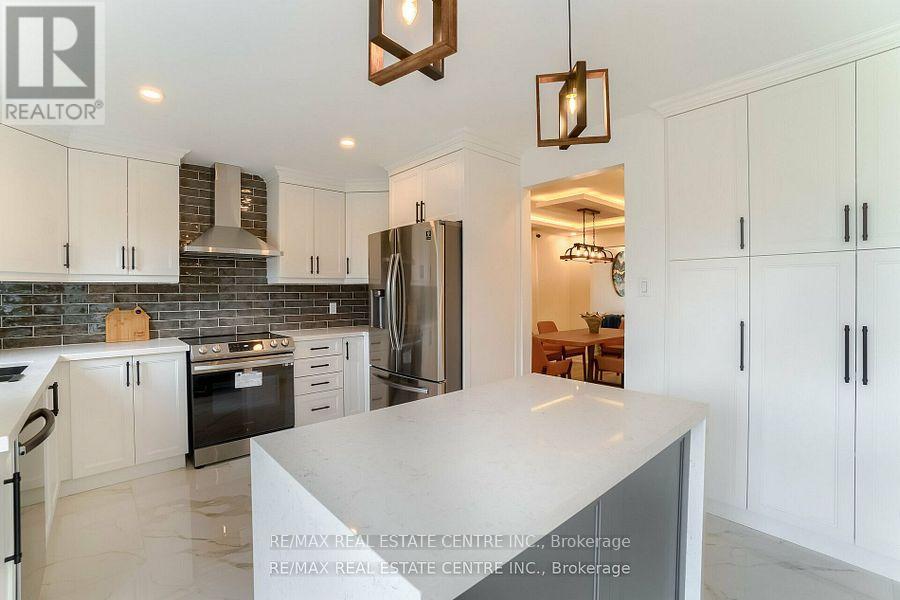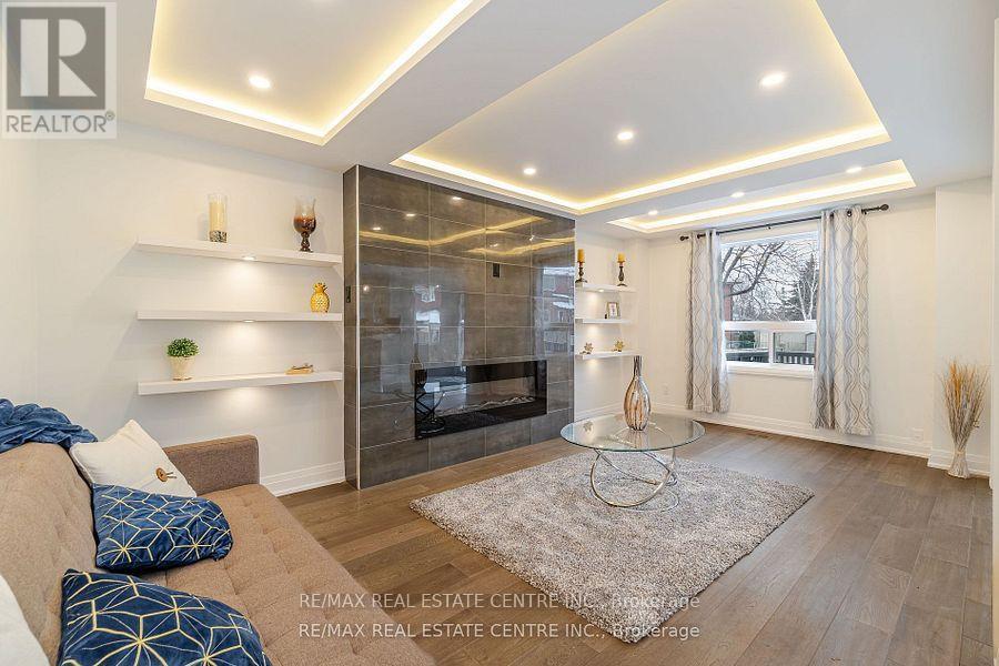 Stunning Fully Renovated Executive Home in Prestigious Rathwood. This elegant residence showcases a striking stucco & stone exterior and impeccable modern finishes throughout. Featuring formal living and dining rooms with illuminated ceilings, a rare main-floor office with 3-pc ensuite and separate entrance, and a grand family room with a sleek contemporary fireplace.Enjoy hardwood floors throughout, new bathrooms, custom oak stairs with iron spindles, and stylish modern lighting. The custom gourmet kitchen offers a centre island, pantry, breakfast area, premium finishes, and new stainless steel appliances. Upstairs boasts four spacious bedrooms including a luxurious primary retreat with walk-in closet and ensuite. The finished basement includes an open-concept rec room, wet bar, fifth bedroom, and cold cellar.Additional highlights include direct garage access, new interlocking, double-car garage, and a landscaped, fully fenced backyard with refinished deck and pool-size yard. Ideally located near highway 401&403, transit, parks, shopping, Schools, Restaurants, and Etobicoke GO Station. Move in and enjoy exceptional luxury and convenience. (id:4555)