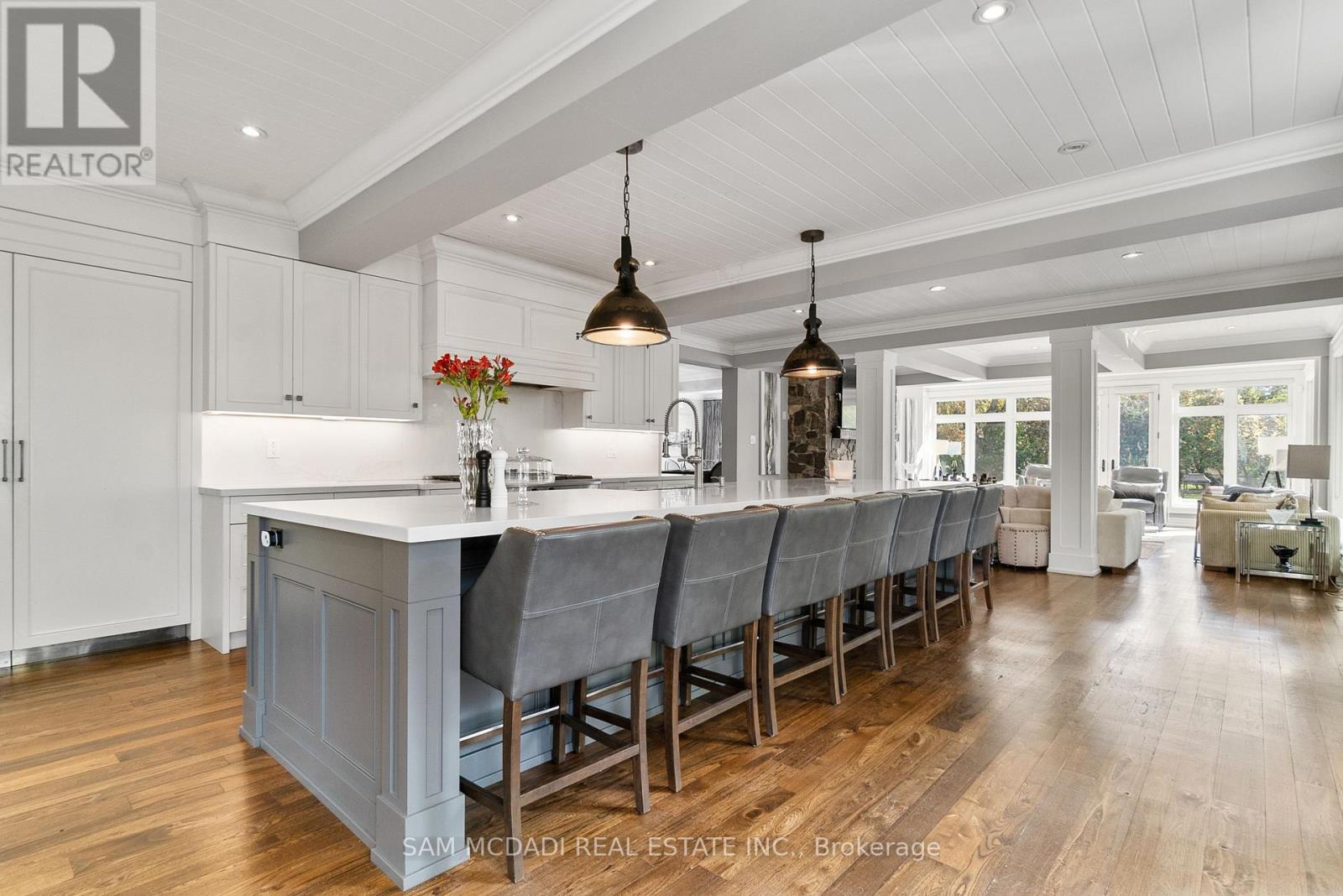 Welcome to 2552 Jarvis St! An extraordinary gated estate nestled on a 2.77-acre lot with riparian rights and direct access to the Credit River. Envisioned for those who seek both grandeur and tranquility, the residence offers over 8,700 SF of finished living space, balancing architectural elegance. Inside, a dramatic foyer unfolds to gracious principal rooms designed with scale and sunlight in mind. The formal dining room sets an elevated tone for entertaining, while the living room and family room invite warmth with their fireplaces, coffered ceilings, and expansive views of the river. The gourmet kitchen is a culinary statement with a 14-foot quartz island, premium appliances, and custom cabinetry flowing seamlessly into the family room and breakfast area. The main level also features a private den, a full laundry and mudroom with access to a heated, oversized garage, and an adjacent gym offering a wellness retreat at home. Above, the primary suite is a private sanctuary with vaulted ceilings, a fireplace, and a balcony among the treetops. The ensuite indulges with a freestanding tub, heated marble floors, and a skylit shower. Three additional bedrooms, each with their own closet spaces and radiant-heated bathrooms, offer comfort and privacy. A self-contained two-bedroom guest suite with a full kitchen, laundry, living area, and balcony provides the ultimate flexibility for guests, family, or staff. Outdoors, a resort-style saltwater pool and year-round spa, newly crafted by Jameson Pools (2022-2023), serve as the property's centerpiece. Surrounded by professional landscape lighting, automated irrigation, and a comprehensive ADT/Telus-monitored security system, this estate was crafted to offer peace of mind. A rare offering for those who value privacy, sophistication, and positioned moments from the Credit Valley Golf & Country Club, the boutiques of Port Credit Village, and some of the city's finest amenities. (id:4555)