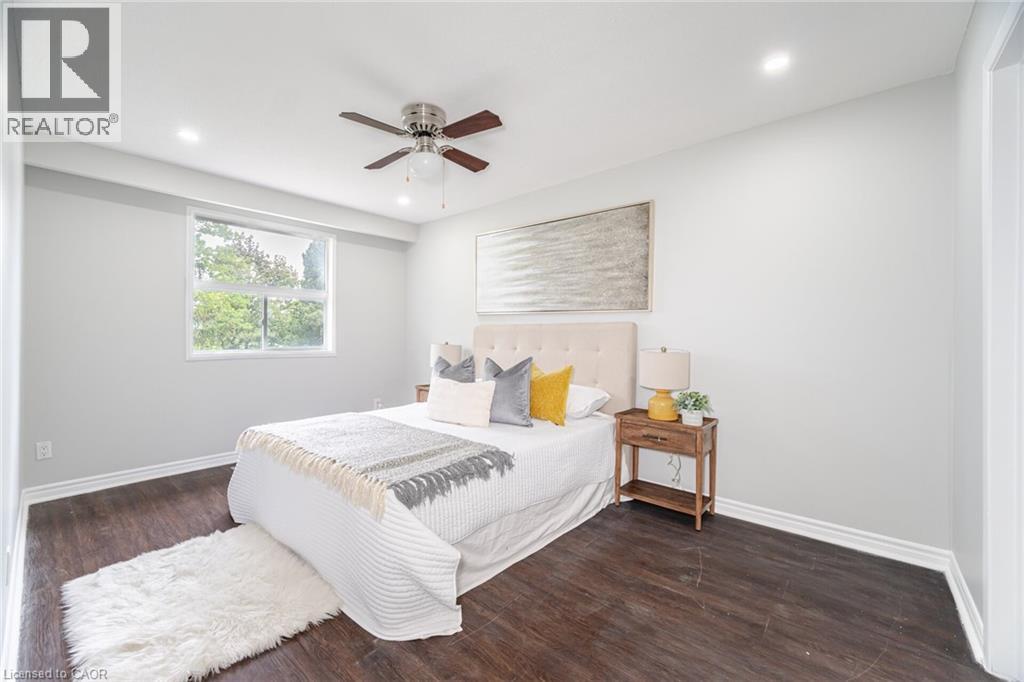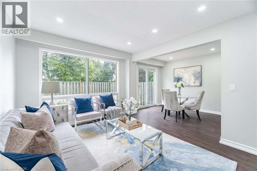 Welcome to this beautifully renovated 4 + 1 bedroom, 3 bathroom townhouse. The modern kitchen boasts stainless steel appliances, while the entire home features elegant laminate flooring—no carpet throughout. Enjoy the updated kitchen and bathrooms, as well as the convenience of main-level laundry. The open-concept living and dining area leads to a private, fenced backyard with no homes behind, providing a serene retreat. The fully finished basement includes an additional bedroom, perfect for guests or extra privacy. Ideally located near amenities, transit, schools, and parks, with easy access to Highway 427. (id:4555)