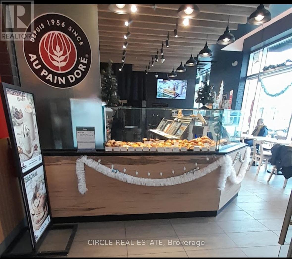 Excellent opportunity to own a successful and fully operational Au Pain Doré franchise in the heart of Mississauga. Well-established bakery-café with strong brand recognition, loyal customer base, and proven operating history. Located in a high-traffic area with excellent visibility, surrounded by dense residential neighbourhoods, offices, and commercial activity, ensuring consistent daily sales.Au Pain Doré is a recognized bakery brand known for premium European-style breads, pastries, desserts, sandwiches, and café beverages. The business generates steady revenue throughout the day from breakfast, lunch, grab-and-go, and take-home bakery sales. Attractive and functional layout with customer seating, display area, and fully equipped production kitchen. Includes a licensed-style outdoor patio accommodating up to 30 seats, significantly increasing sales capacity during peak seasons.This is a turnkey franchise operation, ideal for investors, owner-operators, or multi-unit operators looking to add a proven concept to their portfolio. Fully built-out premises with professional equipment, trained staff in place, and established systems allow for seamless transition. No startup risk-continue operations from day one.Strong upside potential through extended hours, catering, delivery platforms, marketing, and cost optimization. Mississauga's growing population and strong demographics support long-term business stability and growth. Franchise support and brand strength provide added security for investors.Financials available to qualified buyers upon signing confidentiality agreement. Serious inquiries only. All showings by appointment through listing agent. Do not approach staff or management or franchisor directly. (id:4555)