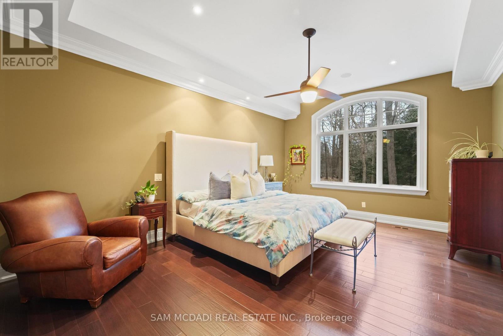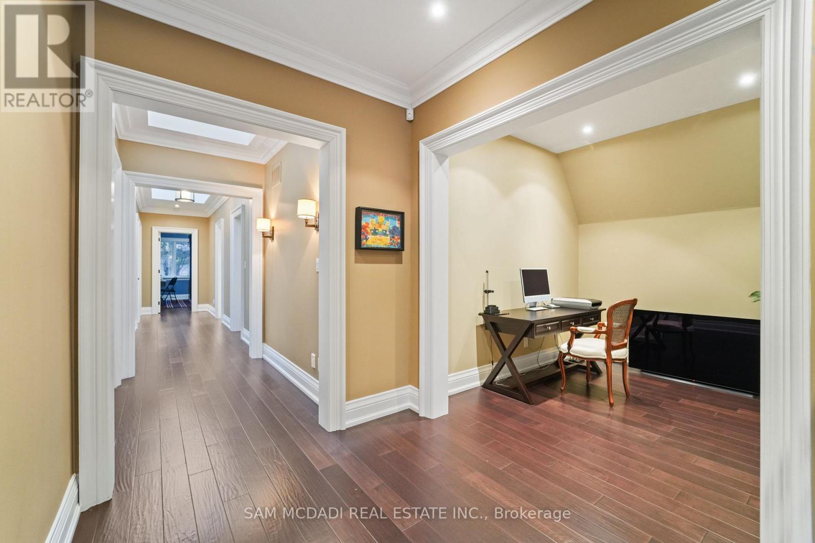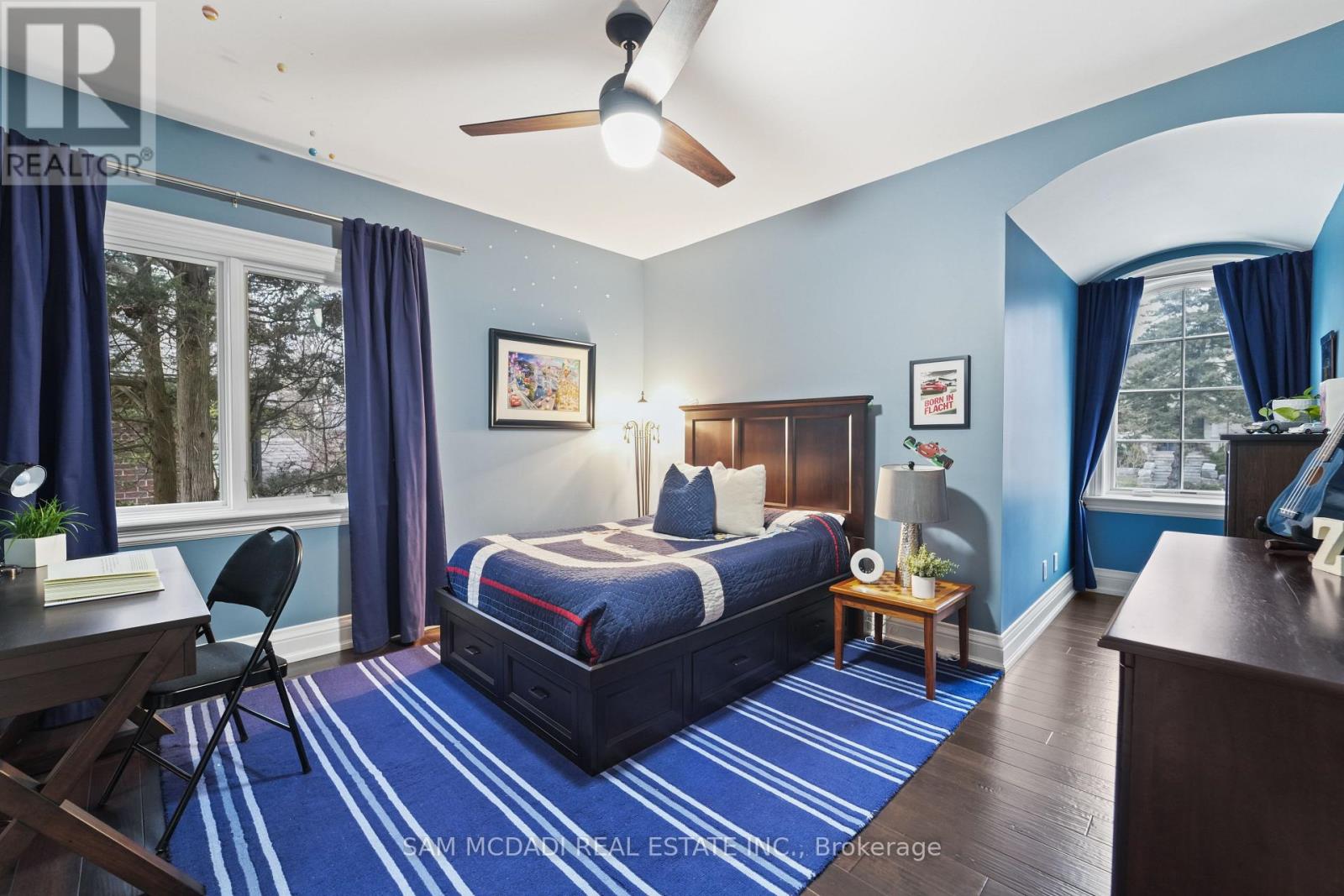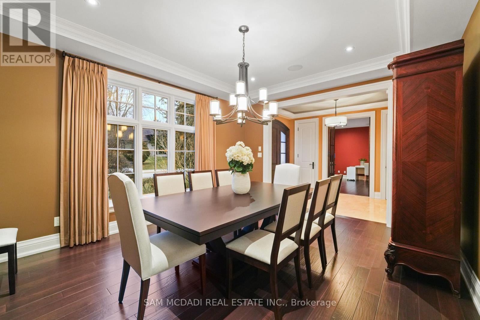 Architecturally distinguished custom residence designed by renowned designer David Small and masterfully built by Camilla Homes (2011), set in one of Mississauga's most prestigious neighbourhoods. This exceptional home showcases superior craftsmanship, thoughtful architectural detail, and seamless indoor-outdoor living.Flooded with natural light through Pella windows and doors and Velux skylights, the home features custom light fixtures, Hunter Douglas motorized blinds, and a fully integrated smart-home and audio infrastructure with wall-mounted control panels. The chef-inspired kitchen is equipped with premium appliances including Wolf gas and electric ovens, a Sub-Zero refrigerator, and a new Miele dishwasher (2025), ideal for both everyday living and entertaining.The family room offers a gas fireplace and integrated home theatre experience with surround sound, while the lower-level walkout basement significantly expands the living space with a dedicated theatre, a private nanny's room, an exercise room, secondary laundry, and direct access to the backyard. All five full washrooms are enhanced with heated floors for year-round comfort.Step outside to a private, resort-style backyard featuring a custom 16' x 34' heated saltwater concrete pool complete with three waterfall shears, a Polaris vacuum system, and an automatic security cover, all set within professionally landscaped grounds. The pool equipment is housed in a custom-built cabana, while artificial turf ensures low-maintenance outdoor living. A screened-in porch and walkout basement further enhance the home's exceptional indoor-outdoor flow.Additional highlights include central vacuum, ADT security with exterior video monitoring, multiple laundry areas, premium sound systems throughout, and a rare combination of luxury, technology, and timeless design. An outstanding opportunity for executive buyers seeking refined living in Mississauga. (id:4555)