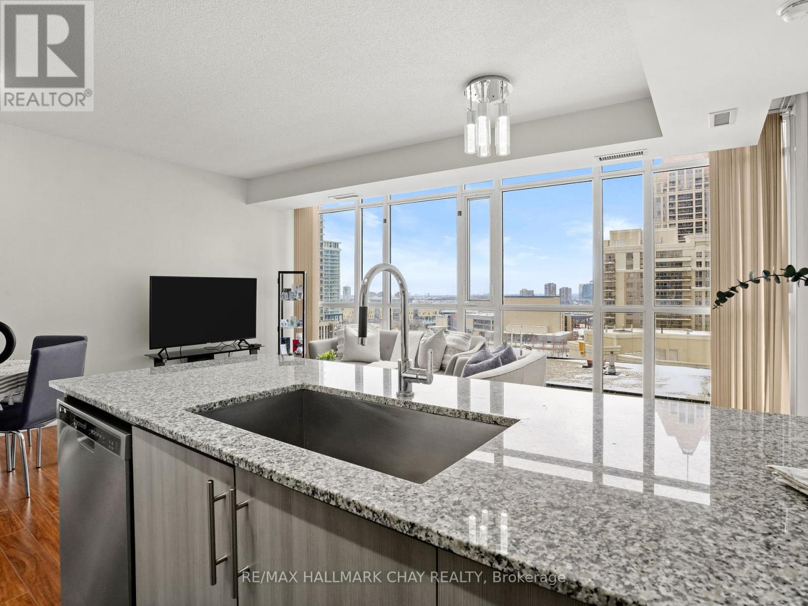 Experience carefree, luxury living in the heart of Parkside Village with this bright and beautifully laid-out corner suite offering stunning, unobstructed east-facing views from the 11th floor. With expansive windows throughout, this open-concept home is flooded with natural light and feels both airy and inviting.The thoughtfully designed layout features a spacious living area with flexible space for dining, a home office, or entertaining, making it ideal for today's lifestyle. The upgraded kitchen is finished with granite countertops, stainless steel appliances, and a breakfast bar-perfect for casual meals or hosting friends.The generously sized bedroom includes a walk-in closet for ample storage, while the real standout is the extra-large balcony, offering a seamless extension of your living space-ideal for morning coffee, evening relaxation, or enjoying city and courtyard views.Residents enjoy access to world-class amenities including an indoor pool, gym, games room, 24-hour concierge, and indoor/outdoor entertaining spaces with BBQs and prep kitchen access, all surrounded by beautifully landscaped gardens. The unit also includes an underground parking space conveniently located near the entrance and a storage locker.Step outside your door to Starbucks, dining, spa services, and everyday conveniences located right within the building. With Square One, Celebration Square, Cineplex, Rec Room, transit, and endless entertainment just steps away, this is urban living at its finest in one of Mississauga's most vibrant neighbourhoods. (id:4555)