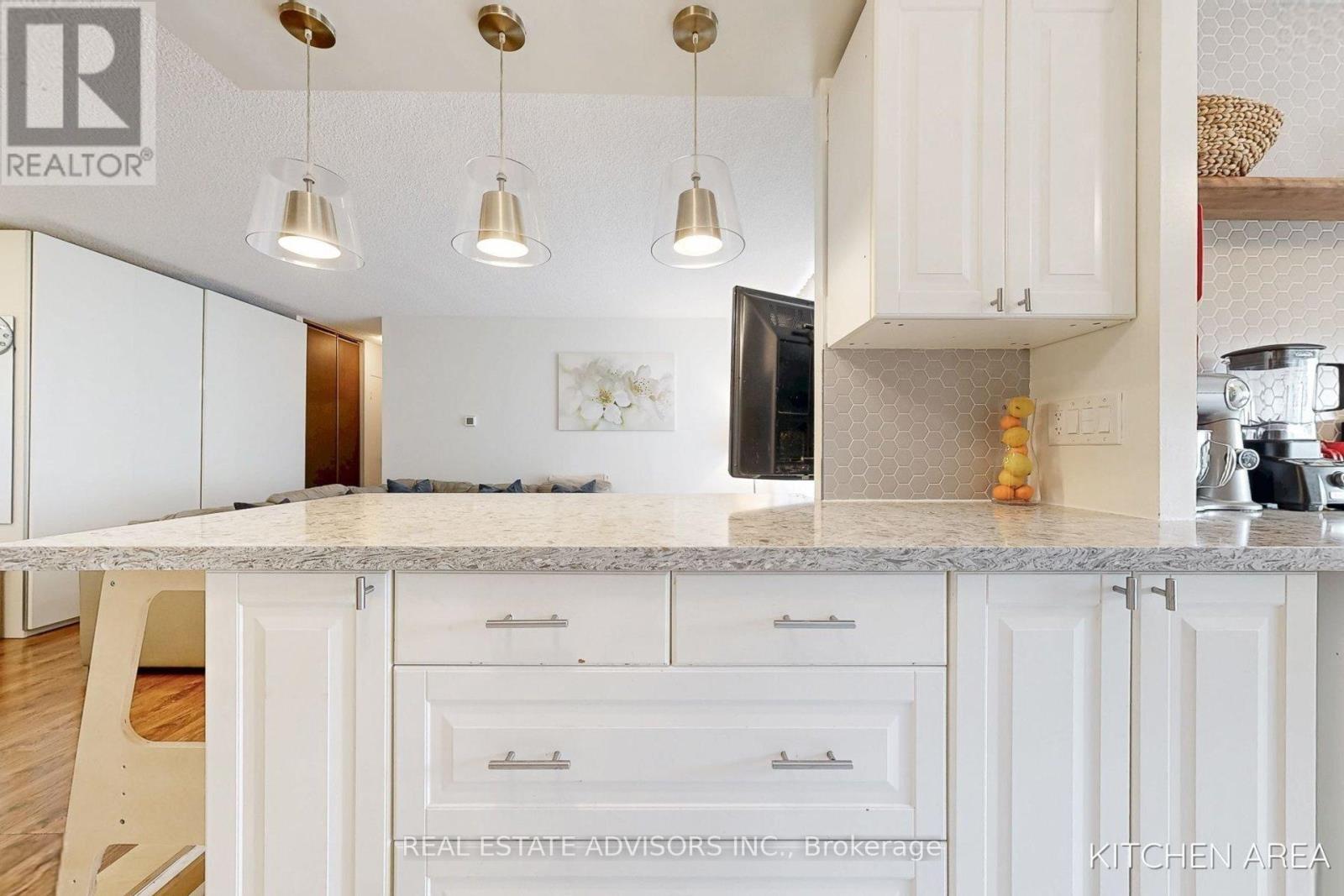 Welcome to Marklane Park, a family-friendly haven in the city! This spacious 3-bed, 1.5-bath enjoys an all-inclusive and affordable maintenance fee. Fully renovated, move-in ready, and comes with a unit-owned, underground parking spot conveniently located right next to the elevator entrance. Savour your morning coffee and south-facing views on your balcony with new outdoor decking. Feel the sun warm your living space through large sliding balcony doors and an inviting kitchen window, overlooking dreamy green treetops in the spring and summer. Open-concept galley kitchen features tasteful, updated tile floors and backsplash, and stunning quartz countertops. Organizing is a breeze with abundant storage throughout. Dedicated laundry room with floor-to-ceiling shelving turns laundry into an effortless task. 2 bedrooms include walk-in closets with plenty of practical shelving and storage space, and the master bedroom features a private half-bath. Main bath includes new cabinetry and walk-in tiled shower . Exercise room, sauna, hobby room, library & party room all available on-site. Outdoors, valuable amenities include an established childcare centre located on the main floor of the building adjacent (offers subsidized spots), playground, renovated wading pool & swimming pool. Excellent condo management keeps the grounds clean, well-maintained, and running smoothly, ensuring your investment is protected now and in years to come. Many highly-ranked schools, daycares, parks, grocers & pharmacies within walking distance. Brand-new Burnhamthorpe C.C. around the corner features 2 indoor swimming pools, indoor skating rink & other amenities. Super accessible location - MiWay buses stop right in front of the building, connecting you directly to Kipling Station in Toronto, and Square One bus terminal in Mississauga. TTC stops and Dixie GO are minutes away. Quick access to Hwy 403, 427, QEW & Gardiner. Put in your offer now and start enjoying your investment poolside this summer! (id:4555)