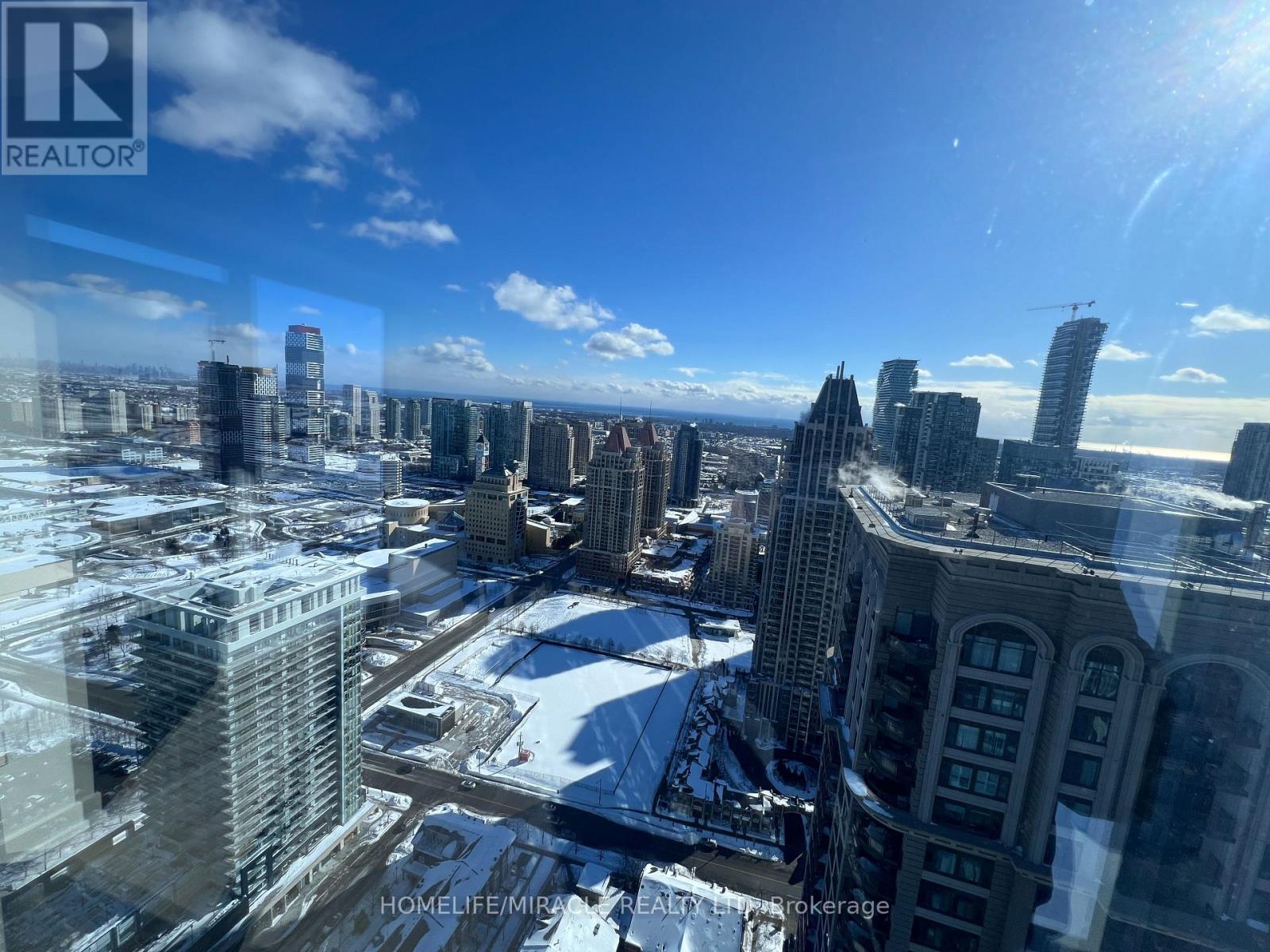 Exquisite High 40th Floor Corner Residence In The Prestigious Square One District. This Sun Drenched 2 Bedrooms+Den, 2 Bath Suite By Daniels Offers Approximately 872 Sq Ft Of Sophisticated Living With Unobstructed Panoramic Views Of The CN Tower, Lake Ontario And Mississauga City Center. Featuring 9 Ft Ceilings, An Elegant Contemporary Palette, And A Chef Inspired Kitchen With Quartz Countertops, Premium Soft-close Cabinetry And A Seamless Open Concept Design. Step Onto Your Private Balcony And Enjoy Breathtaking Sunset Views Above The Skyline.Residents Enjoy An Exceptional Lifestyle With Resort Style Amenities, Including A State Of The Art Fitness Center, Indoor Court, Climbing Wall, Meditation Room, Sauna And Change Rooms, As Well As Beautifully Designed Media, Dining And Kitchen Lounges Ideal For Entertaining. Additional Amenities Include Meeting Rooms, Gardening Spaces, And 24 Hour Concierge Service, Offering The Perfect Balance Of Wellness, Productivity And Luxury Living.Ideally Located Steps To Square One Shopping Center, Sheridan College Campus, Fine Dining, Entertainment And Transit. This Is Refined Urban Living At Its Finest. (id:4555)