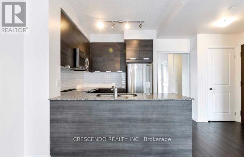 Welcome to a spacious one bedroom suit, perfectly situated in one of Mississauga's most desirable and well connected cmmunities. Offering 572 sq.ft of space plus 44 sq.ft open balcony. This unit features 9 ft ceiling and floor to ceiling windows that give the unit tremendous natural light with beautiful views of the city skyline. Open Concept layout is functional with living and dining. Kitchen with granite counter tops and stainless-steel appliances and laundry ensuite. Great location with 24-hour concierge service, close to cafes, shops, schools, parks and hwy 403/401 and transit in walking distance. (id:4555)