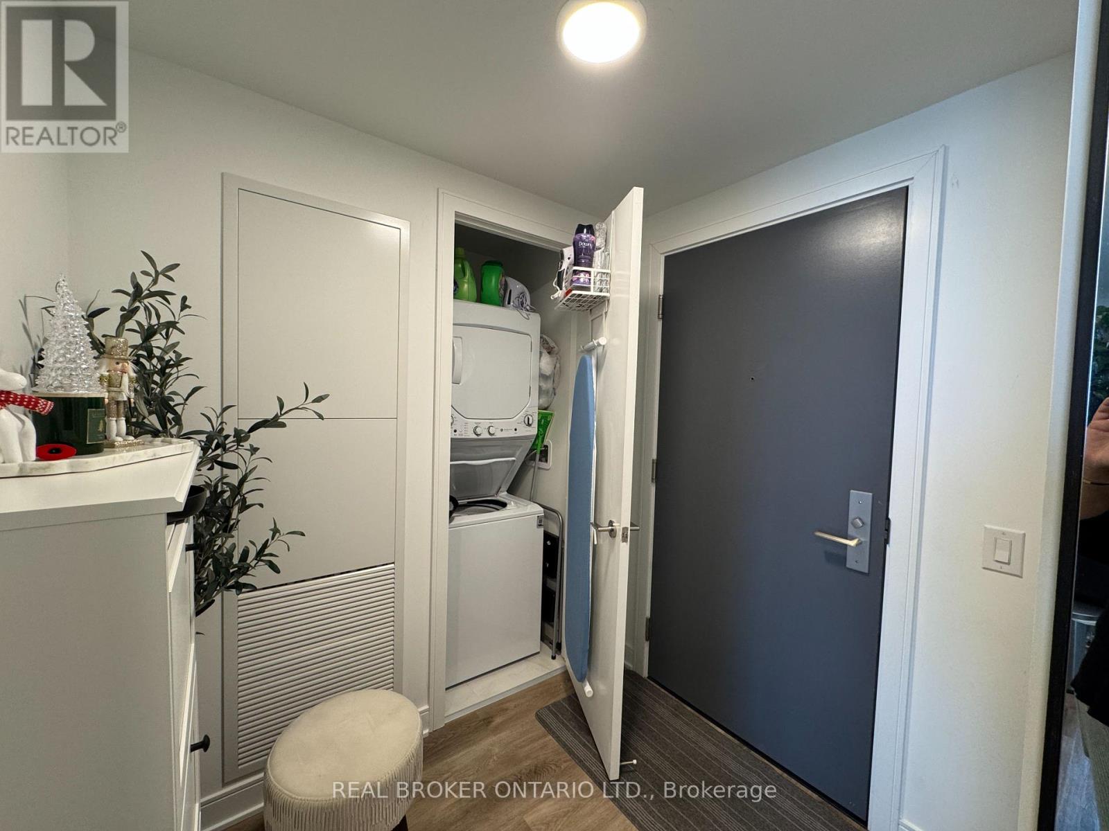 Live in refined style at Artform Condos. This newly completed (2024) luxury 1-bedroom plus den, 2-bath suite sits on Level 14, offering stunning elevated views and abundant natural light. The elegant open-concept layout features upscale finishes throughout, including a designer kitchen with integrated stainless-steel appliances and sleek cabinetry, flowing into the living area with walk-out to a private balcony. The primary bedroom features floor-to-ceiling windows and a spa-inspired 4-piece ensuite with walk-in shower. A versatile den is ideal for a home office or guest space, complemented by a second full bathroom. In-suite laundry included, along with one underground parking space and one locker. Residents enjoy premium amenities including 24-hour concierge, fitness and yoga studios, outdoor terrace, co-working lounges, private dining room with bar, and screening room. Conveniently located approximately 30 minutes to Downtown Toronto, 30 minutes by GO Train to Union Station, and 15 minutes to Pearson International Airport, with easy highway access. (id:4555)