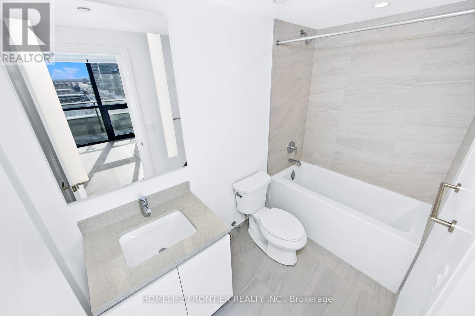 Welcome to EX1 at The Exchange, located in the heart of Mississauga's City Centre. This modern 2-bedroom, 2-bathroom suite features a bright, open-concept layout highlighted by floor-to-ceiling windows and a sleek kitchen with integrated appliances and quartz countertops. The living space flows seamlessly to an expansive, full-length private balcony. The primary bedroom serves as a private retreat with its own 4-piece ensuite, complemented by a versatile second bedroom and a separate 3-piece guest bath. Enjoy premium building amenities including a fitness centre, indoor pool, and 24-hour concierge, all while being steps from Square One, Sheridan College, and major transit. Parking is rented additionally & subject to switching under the Tenant's name (if needed). (id:4555)